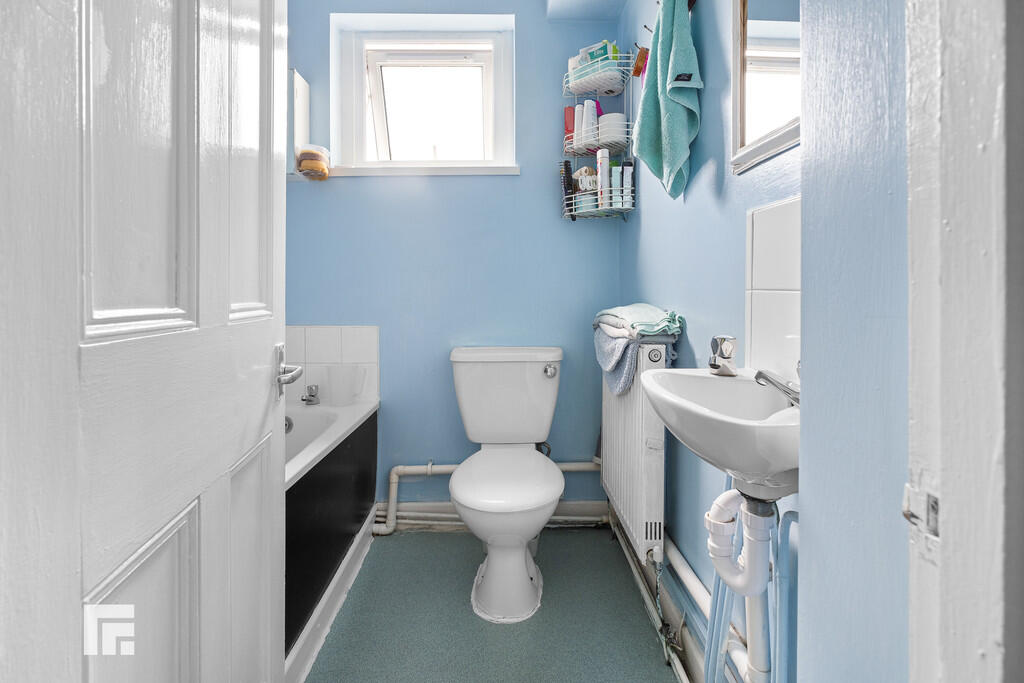 BATHROOM5' 4" x 5' 2" (1.65m x 1.60m) White suite comprising panelled bath with hot and cold taps over. Wall mounted wash hand basin with hot and cold taps plus wall mounted mirror above. WC. Double glazed window to side. Vinyl floor. Extractor. Radiator.