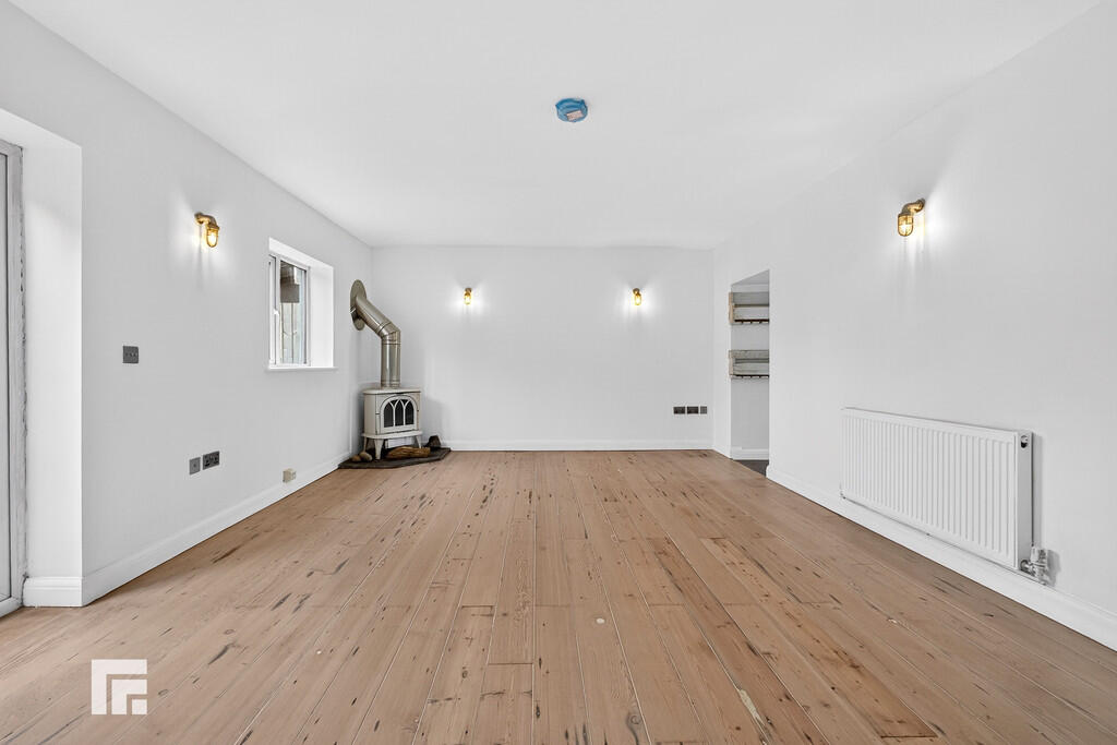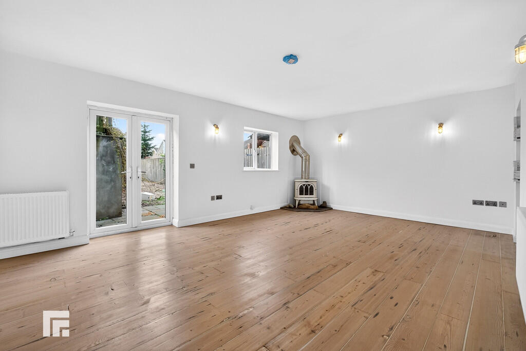 LOUNGE21' 2" x 13' 8" (6.47m x 4.19m) uPVC double glazed window and French patio doors to rear garden. Exposed wooden floorboards. Two radiators. Feature wood burner.