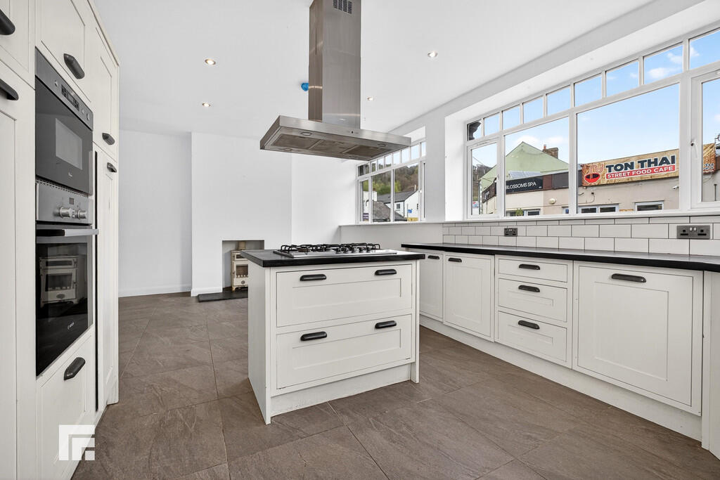 KITCHEN/DINER22' 7" x 16' 0" (6.90m x 4.90 maxm) A spacious open-plan kitchen/diner fitted with a wide range of base and eye level units incorporating ceramic Belfast sink with complementary solid Iroko wood work surfaces. Fitted electric double oven, integrated dishwasher, fridge, freezer, dishwasher and washing machine. Feature central island with breakfast bar and five burner gas hob with extractor hood over. Tiled splash backs and slate tiled flooring. Spotlights. uPVC double glazed windows to front and side aspects. Feature wood burner with slate hearth. Handmade oak shutters. Radiator. Door to WC and opening to lounge.