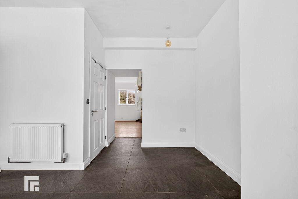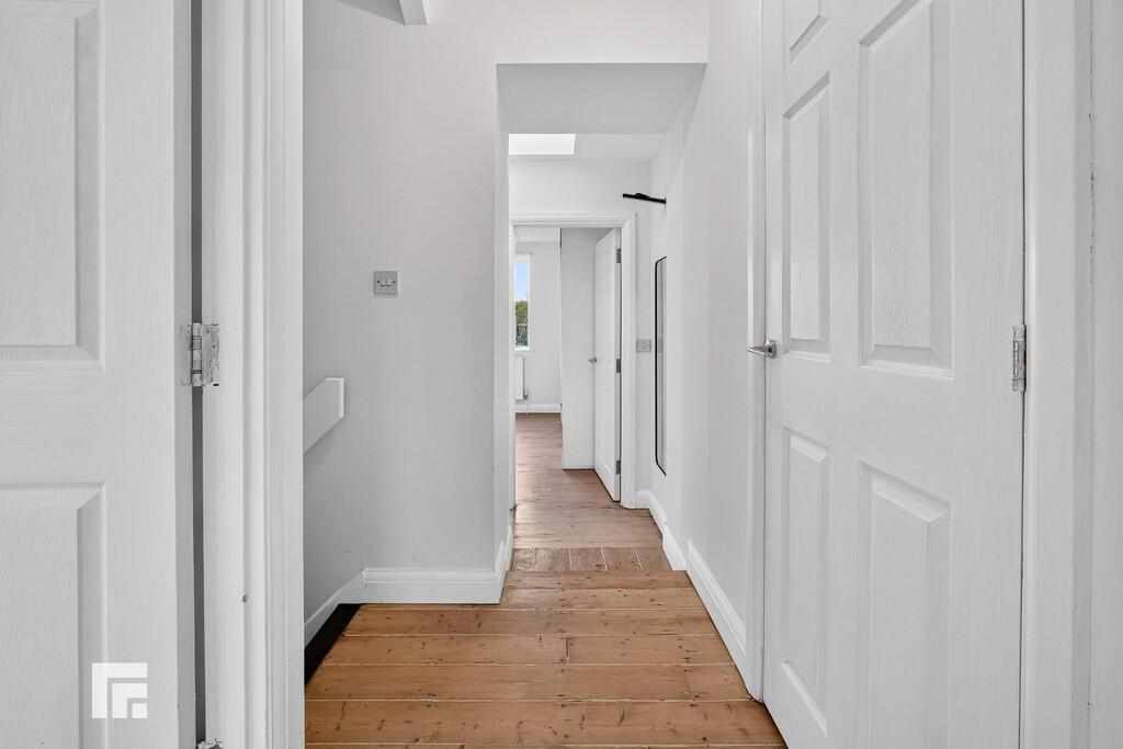 HALLWAY Window over main entrance door, into hallway. Door to kitchen/diner, opening to lounge. Exposed wooden floorboards. Stairs to first floor.