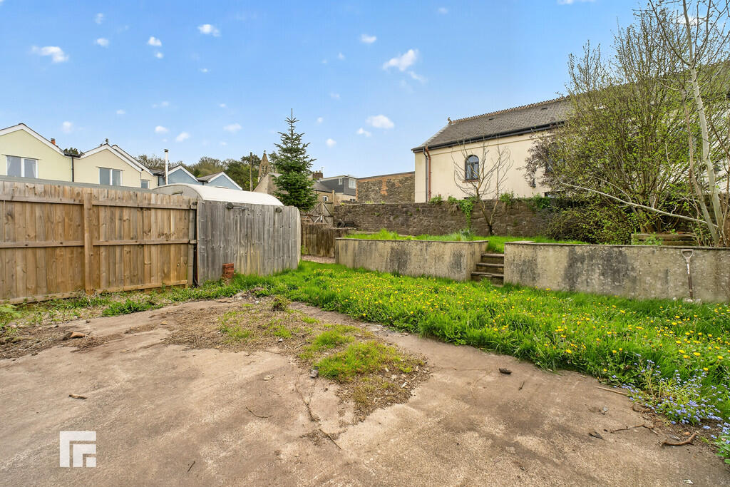 REARGARDEN A large, South-Westerly facing L-shaped rear garden mainly stone chippings with paved pathway to rear lawned area. Enclosed with boundary fence and wall. Outside tap