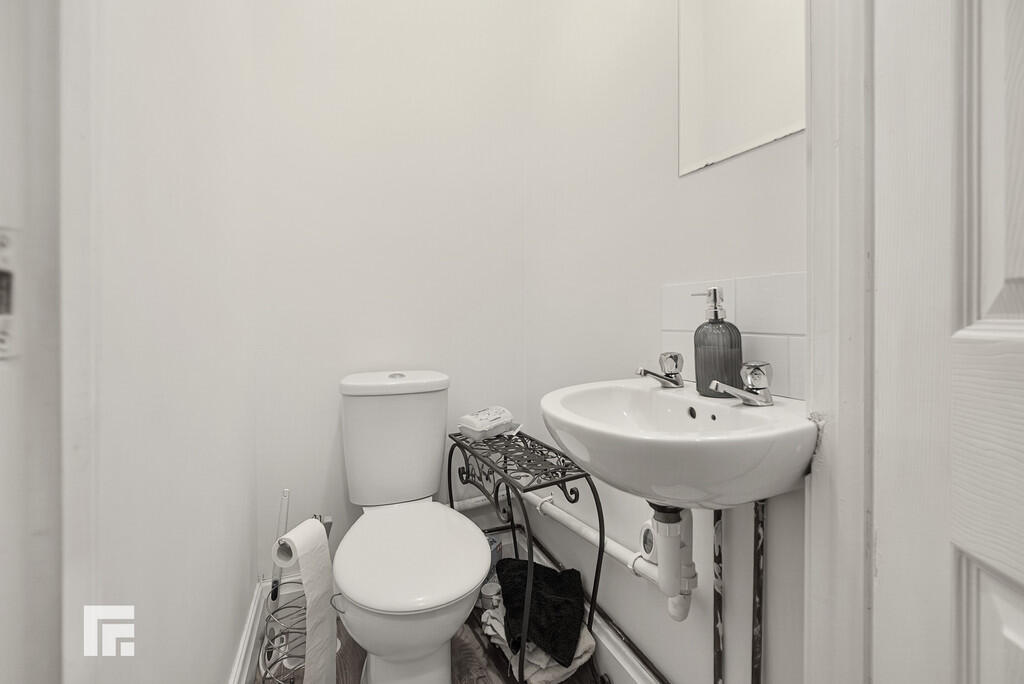 W.C W.c and wash hand basin with hot and cold taps. Laminate flooring.