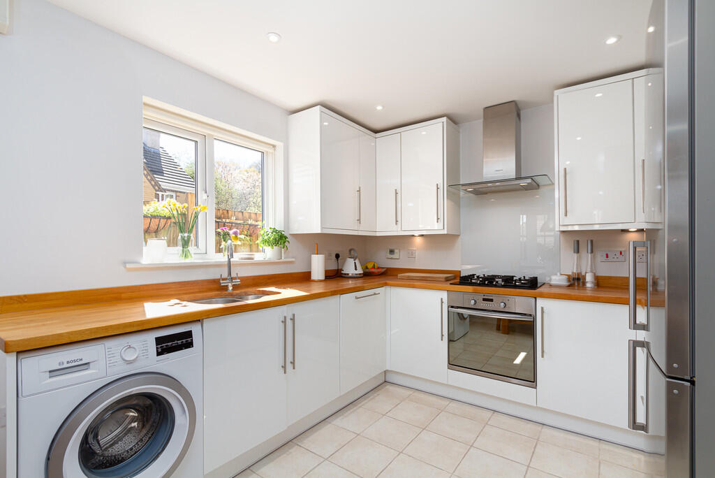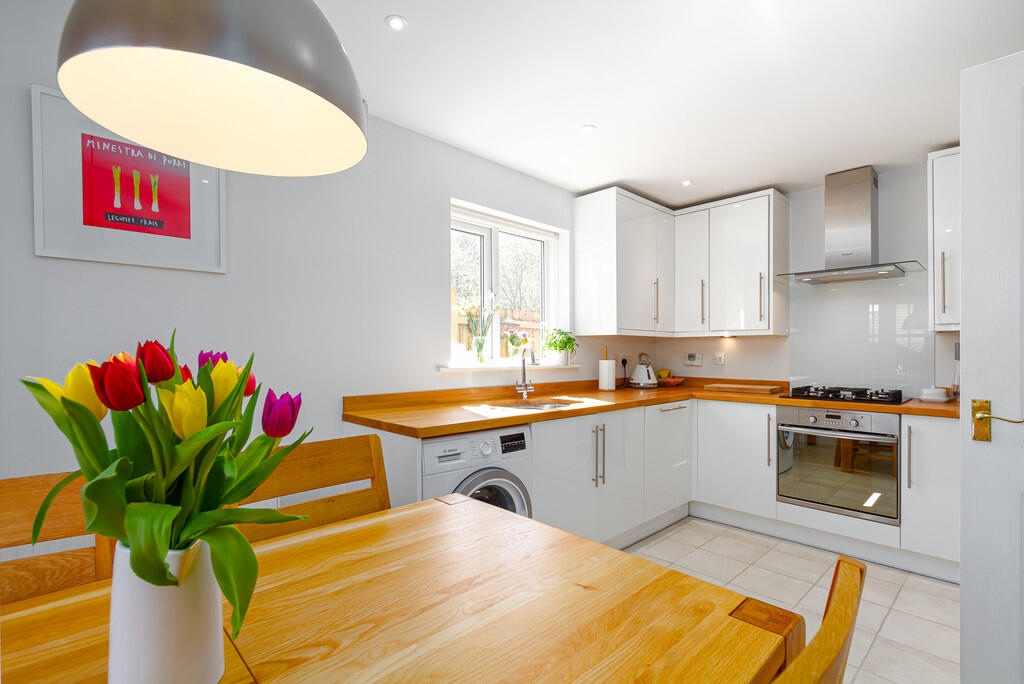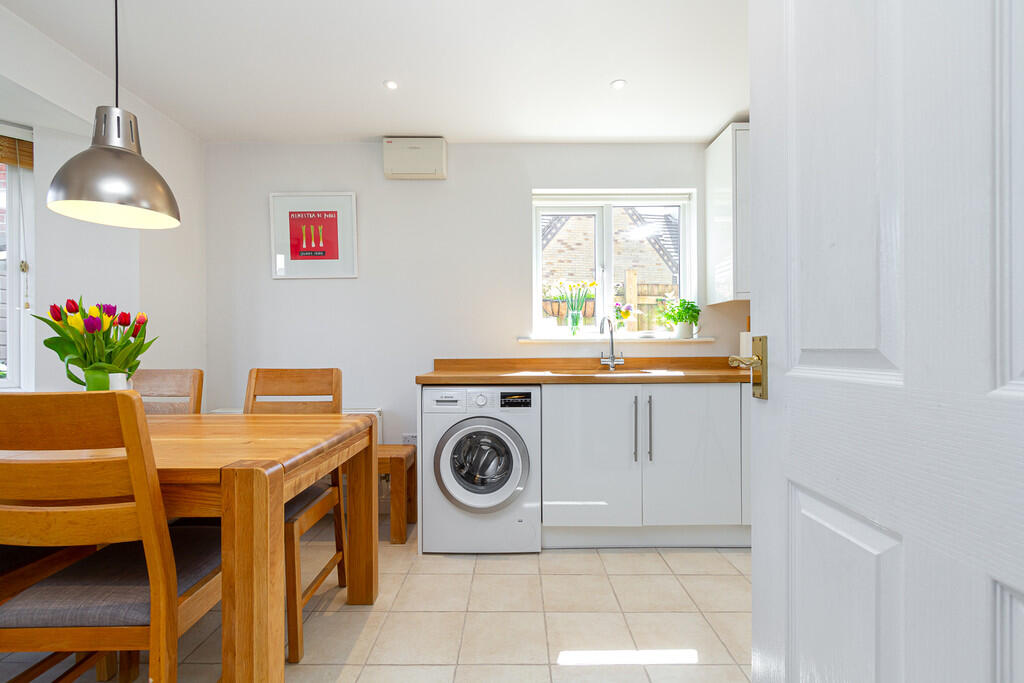 KITCHEN/DININGROOM8' 5" x 16' 3" into bay (2.585m x 4.975m) uPVC double glazed bay window to front and side. Tiled flooring. A range of base and eye level units incorporating one and a half stainless steel sink unit with drainer and mixer tap and solid oak work surfaces. Built in electric oven, gas hob with glass splashback and extractor hood over. Integrated dishwasher. Space for a fridge/freezer and washing machine. Cupboard housing central heating boiler. Space for tables and chairs. Spotlights. Radiator.