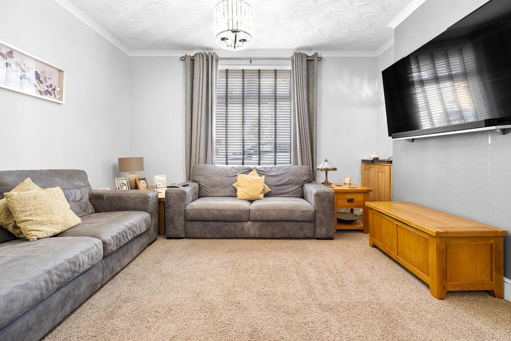 LIVINGROOM22' 8" x 13' 7" (6.93m x 4.15m) Carpet to floor. Double glazed uPVC window to front aspect with fitted blinds. Pendant light fittings. Radiator. Power points. TV and telephone point.