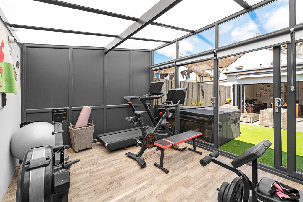 FAMILYROOM16' 0" x 15' 1" (4.89m x 4.61m) Continuation of tiled flooring with underfloor heating. Spotlights. TV point. Power points. Double glazed bi-folding doors leading to rear garden and summer house.