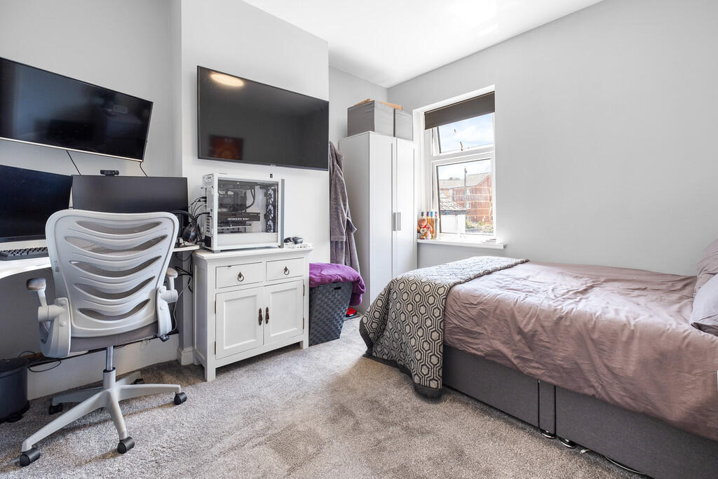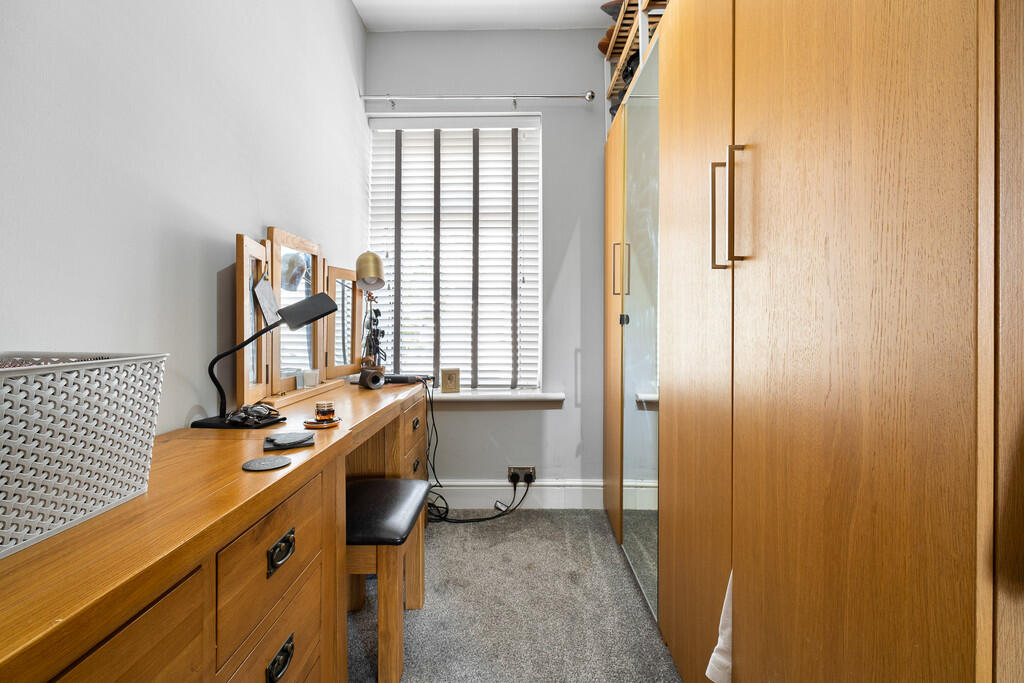 BEDROOMFOUR10' 4" x 4' 3" (3.15m x 1.30m) Carpet to floor. Pendant light fitting. Fitted wardrobes with shelving and hanging space. Power points. Radiator. Double glazed uPVC window to front aspect with fitted blinds.