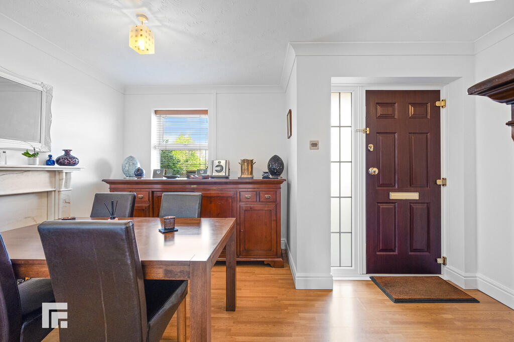 DININGROOM13' 8" x 10' 3" (4.17m x 3.13m) Double glazed uPVC windows to front aspect. Laminate wood effect flooring. Gas fireplace with marble surround. Large wall mounted radiator. Two pendant light fittings. Power points. Coving to ceiling.