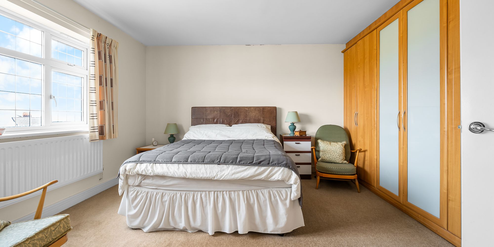BEDROOM ONE Dimensions: 14' 10" x 12' 0" (4.54m x 3.68m). Overlooking the entrance approach, an excellent sized primary bedroom. A range of fitted wardrobes to one side. Additional window to side. Radiator.