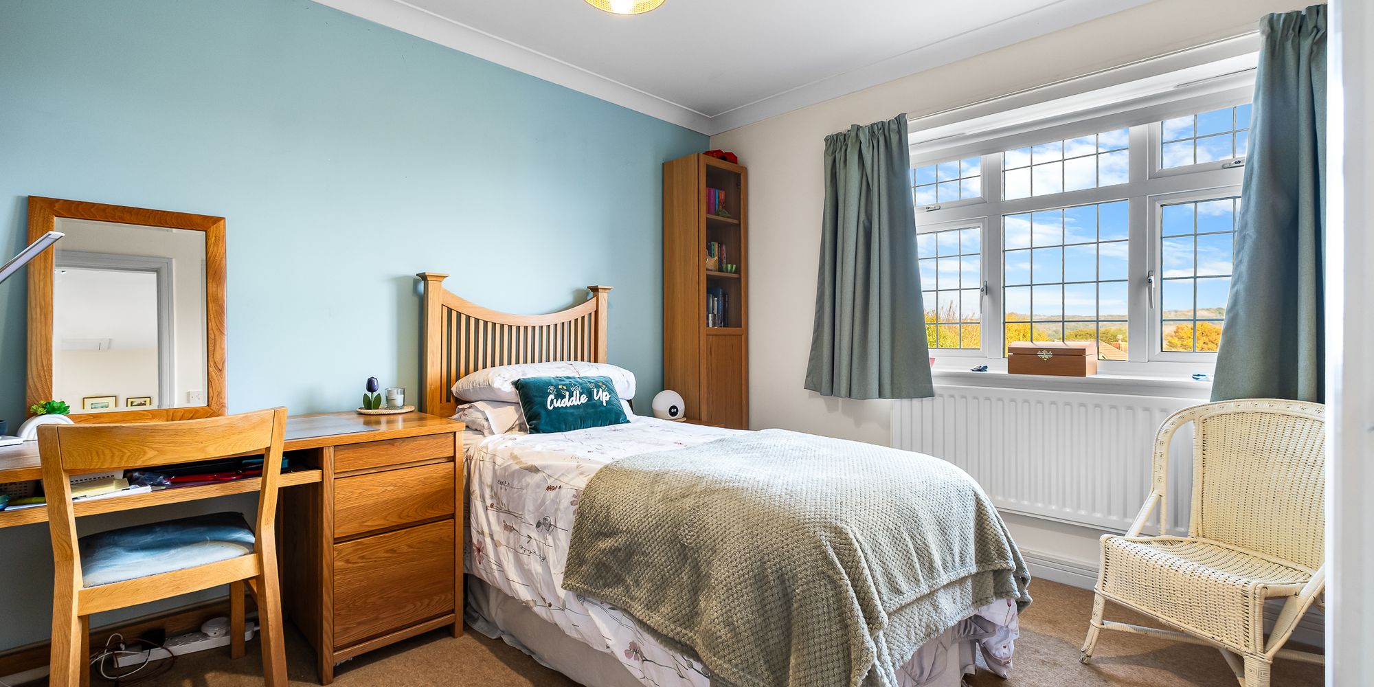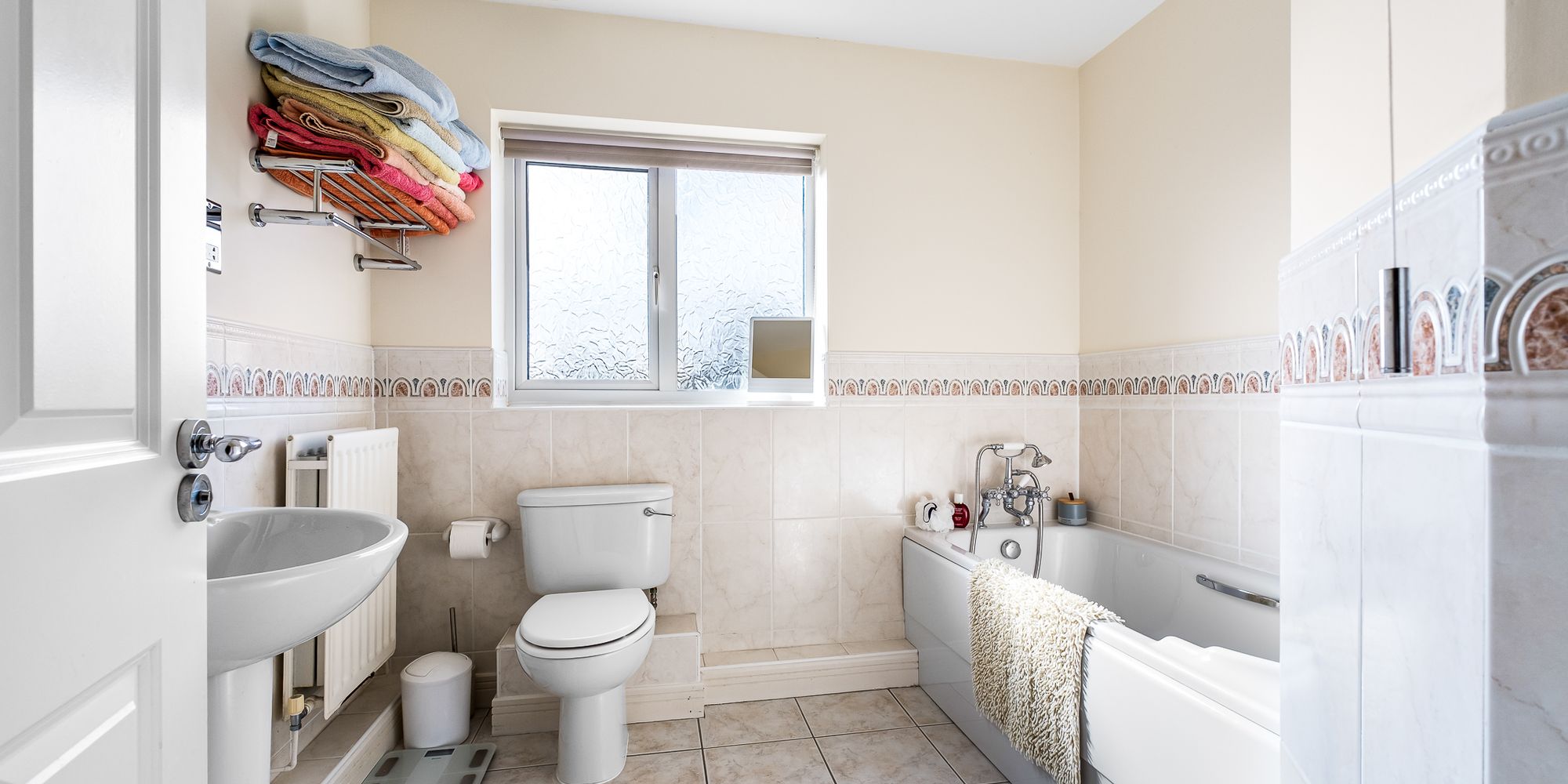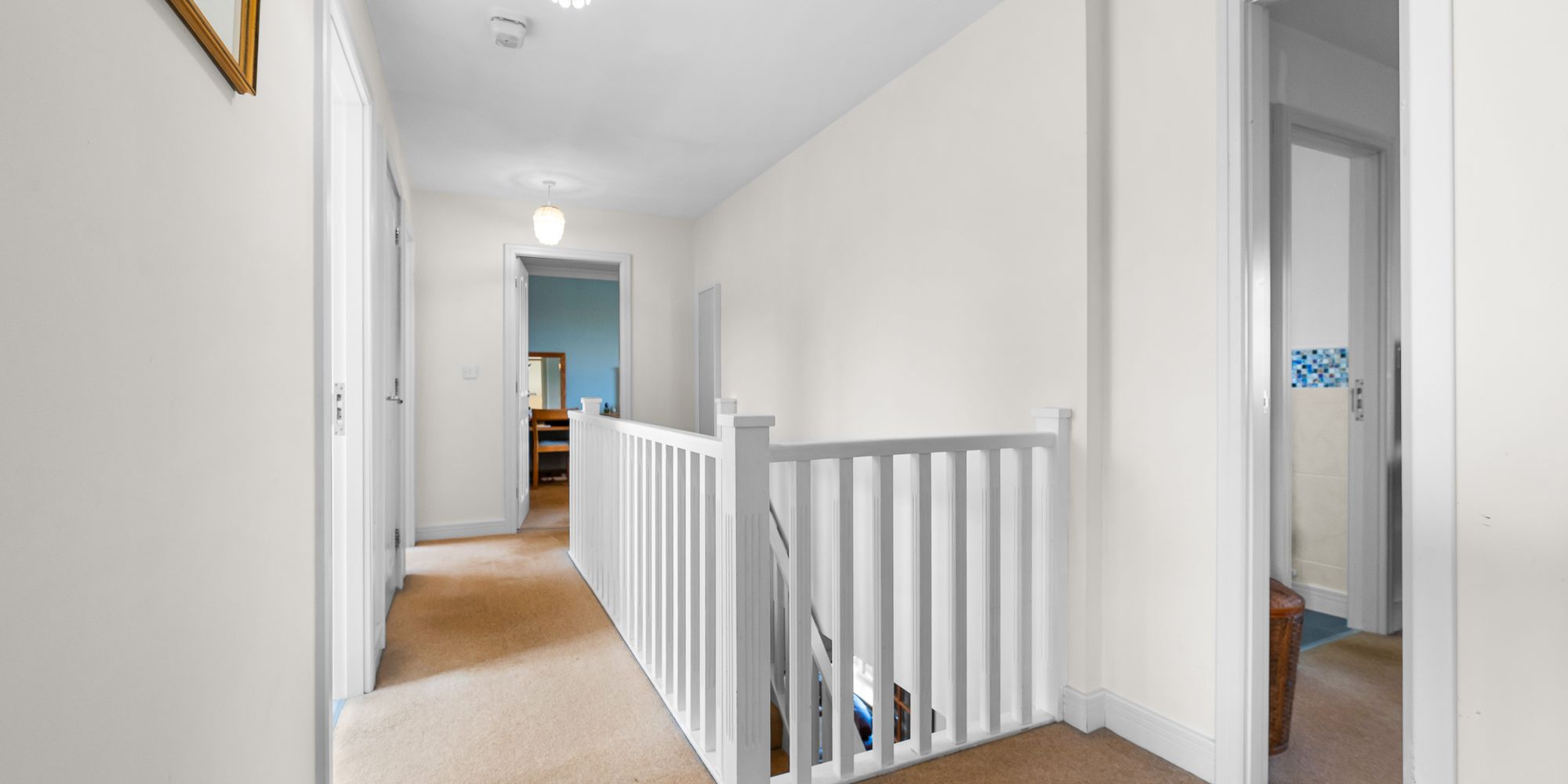 LANDING Approached via an easy rising staircase leading to the spacious first floor landing. Access to boarded roof space with lighting via drop down ladder. Airing cupboard housing the hot water cylinder. Radiator.