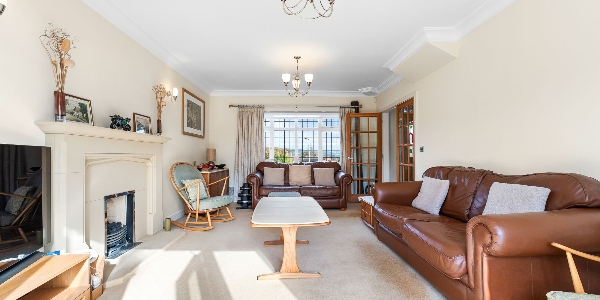 LOUNGE Dimensions: 20' 5" x 12' 8" (6.23m x 3.87m). An excellent sized primary reception with window to front and french doors to the rear garden. Feature bath stone fireplace with inset coal effect living flame gas fire. Two radiators.