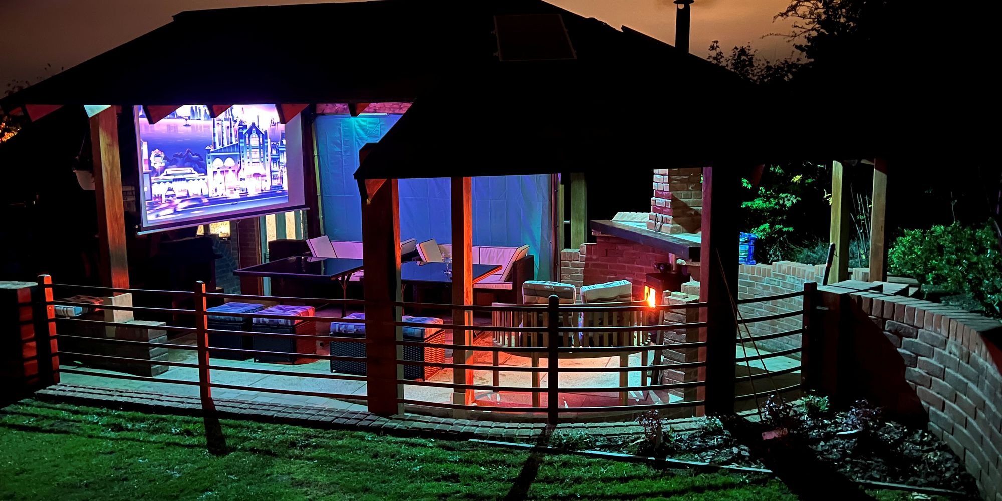 With 12v dc night activated lighting and Bluetooth speakers.