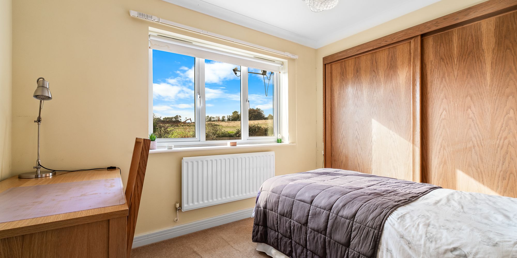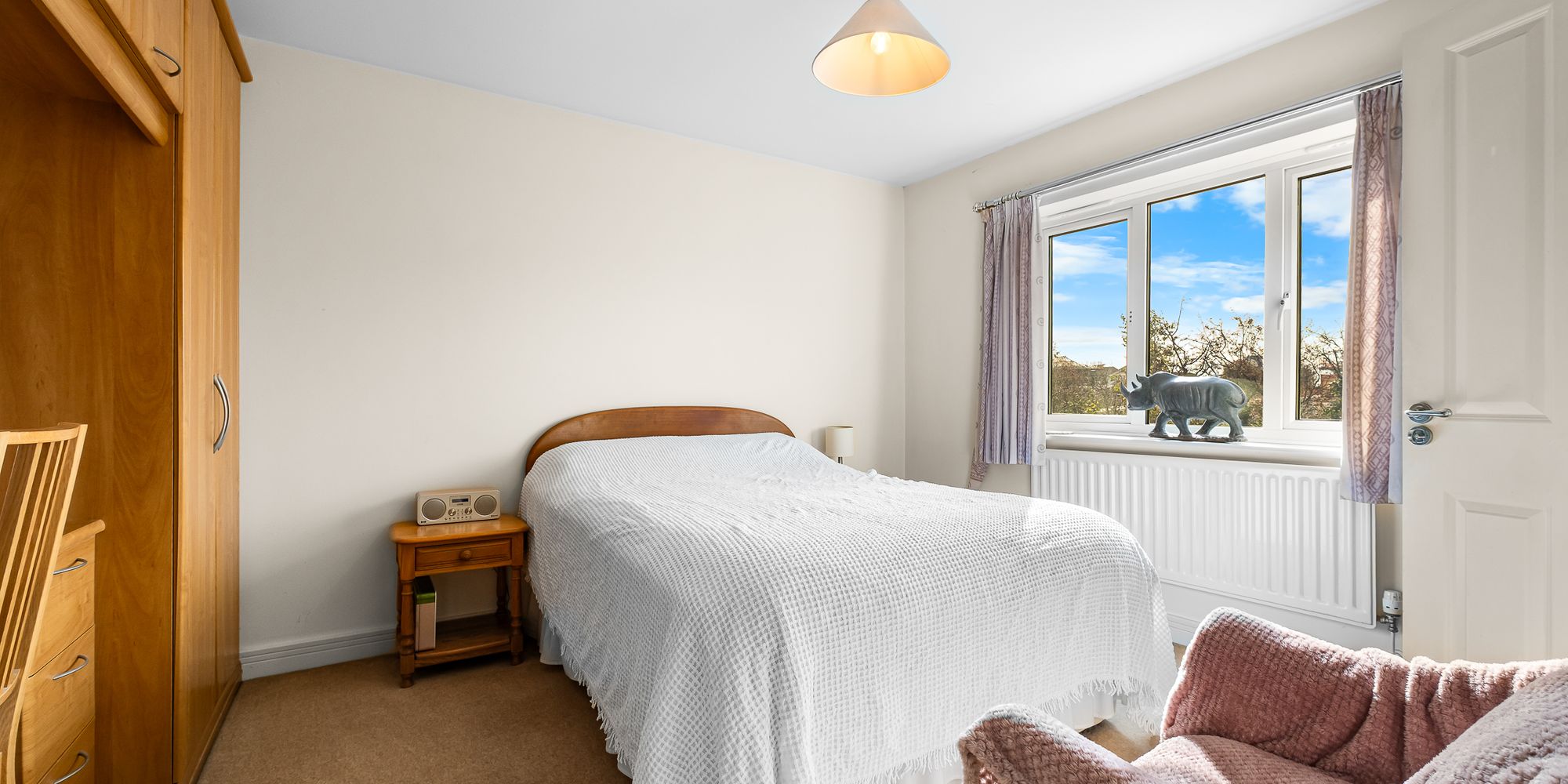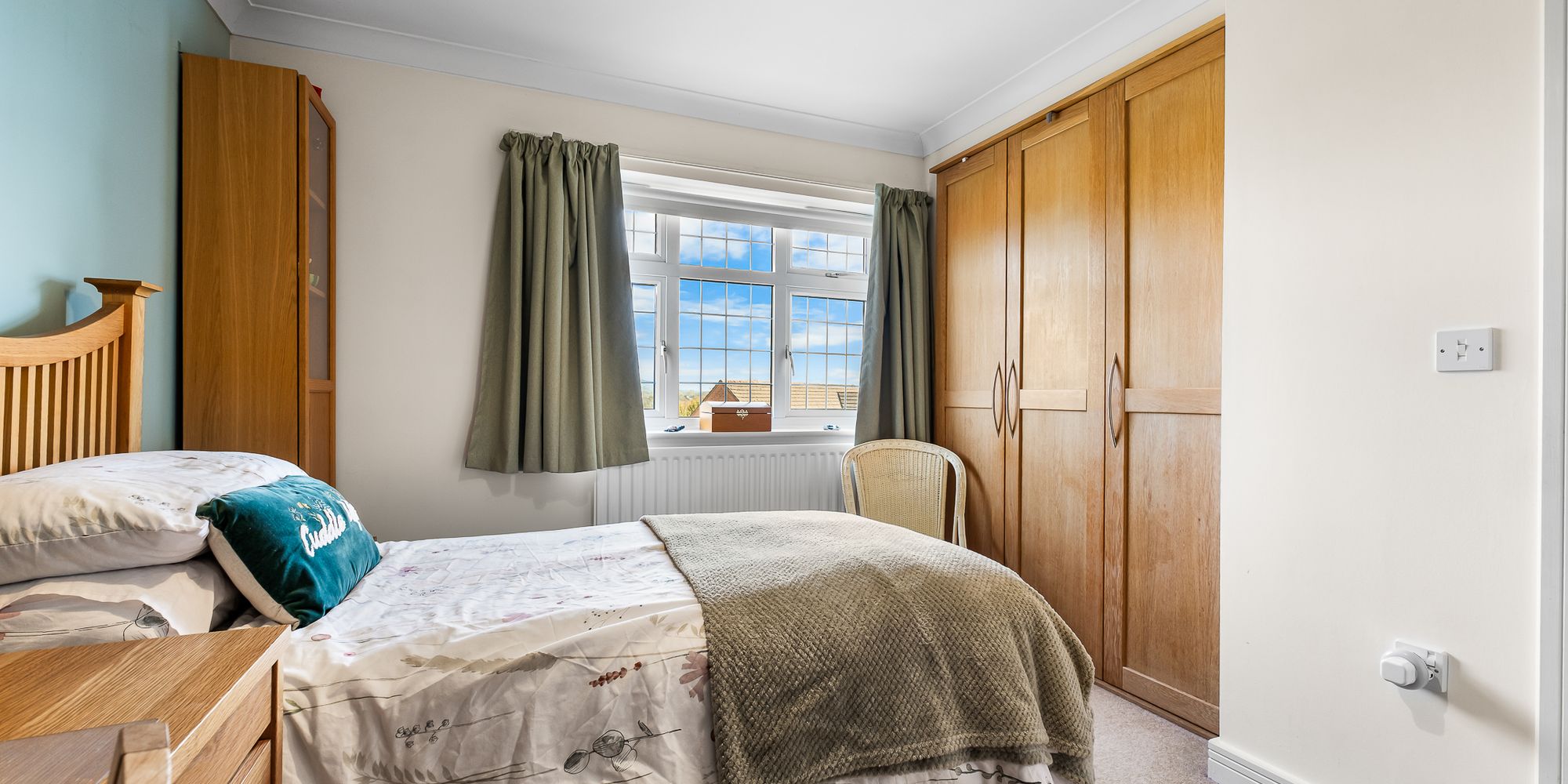 BEDROOM THREE Dimensions: 11' 7" x 9' 4" (3.55m x 2.87m). Overlooking the entrance approach, a third double bedroom. Range of fitted wardrobes. Radiator.