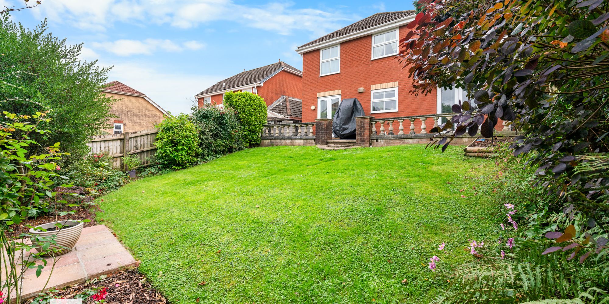 REAR GARDEN A well maintained rear garden bordered by a timber fence. Patio area leading to a sloped lawn, mature plants and shrubs. Outside tap. Outside power socket. Timber gate to side for access.