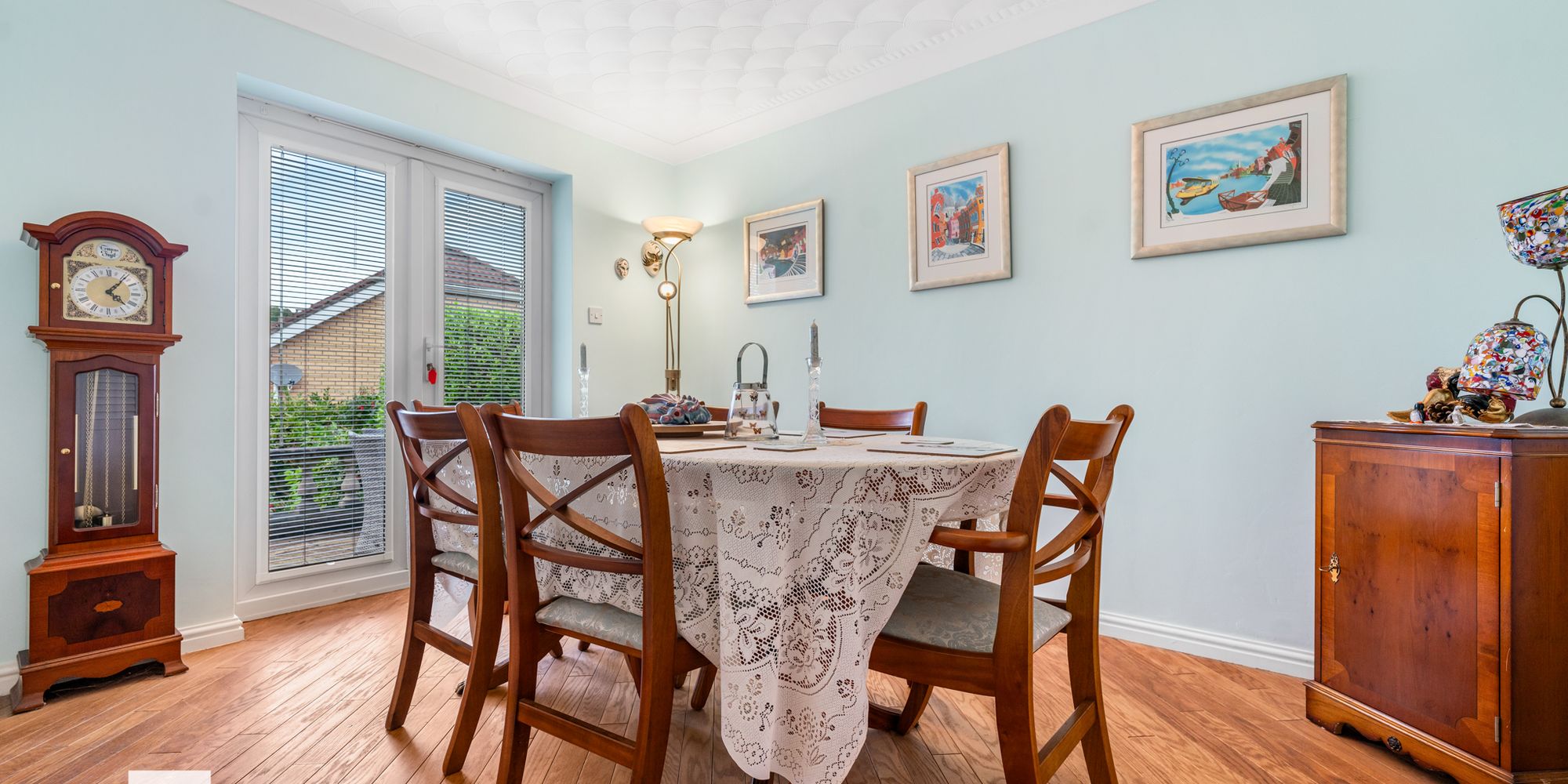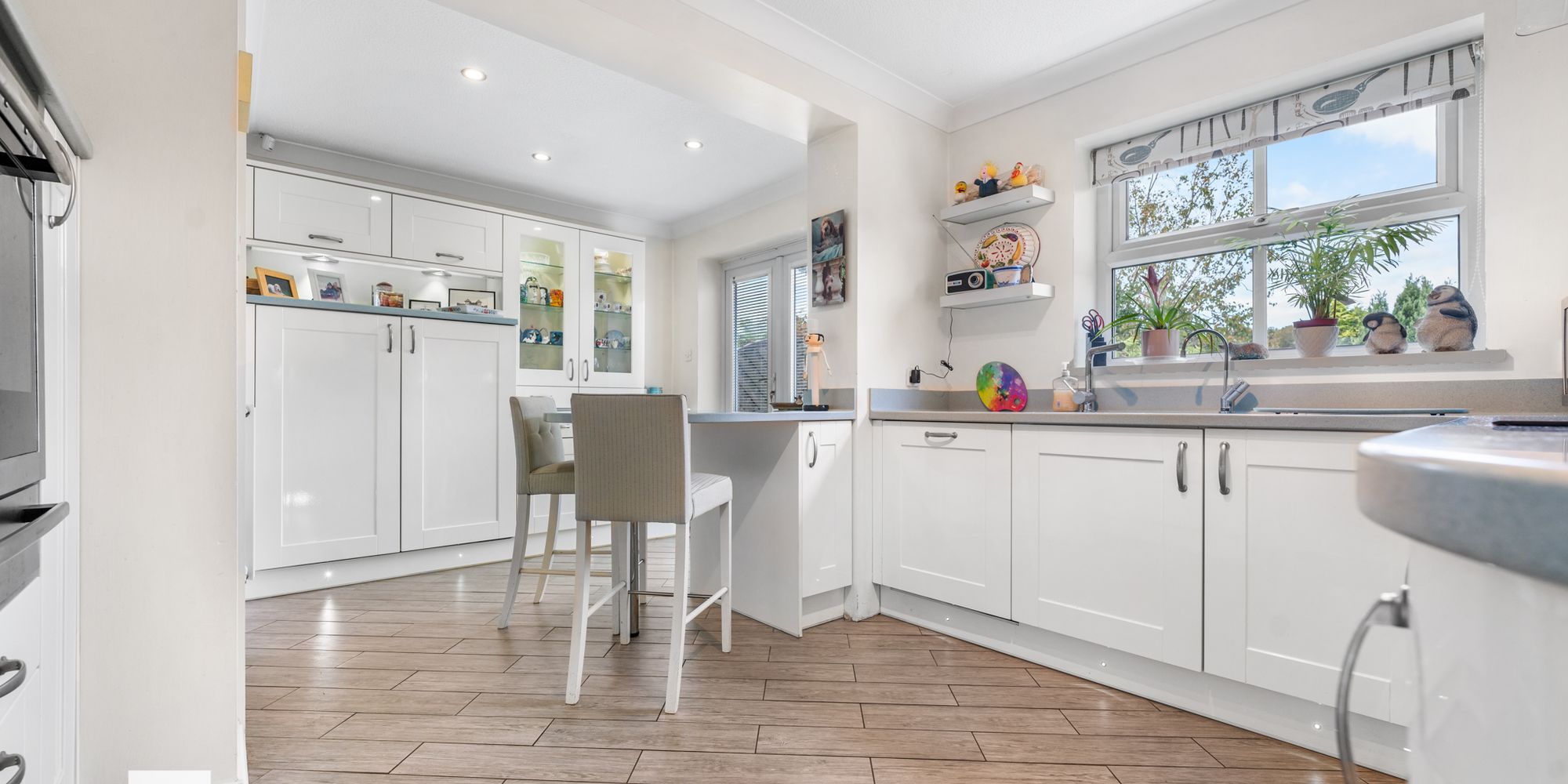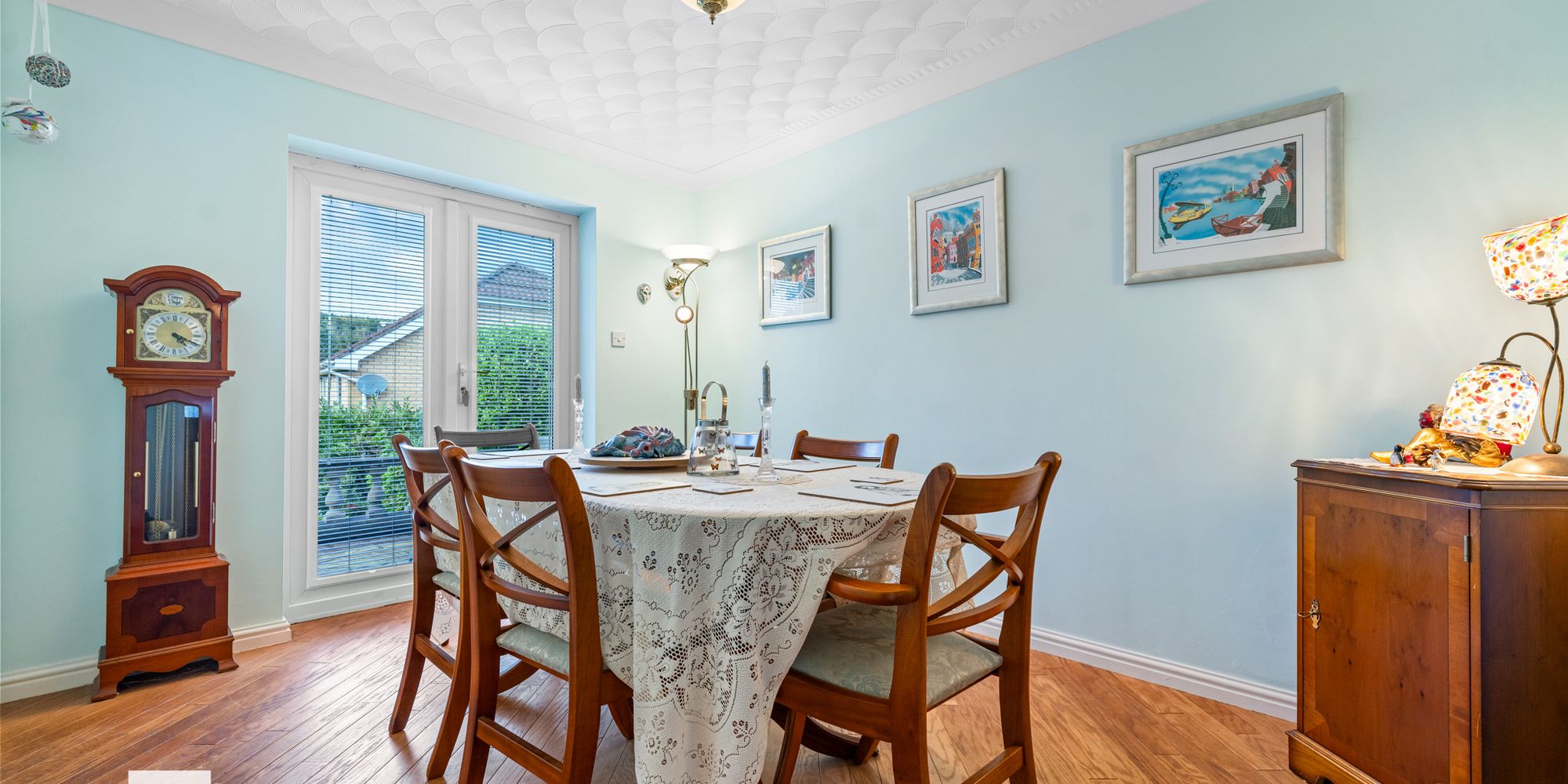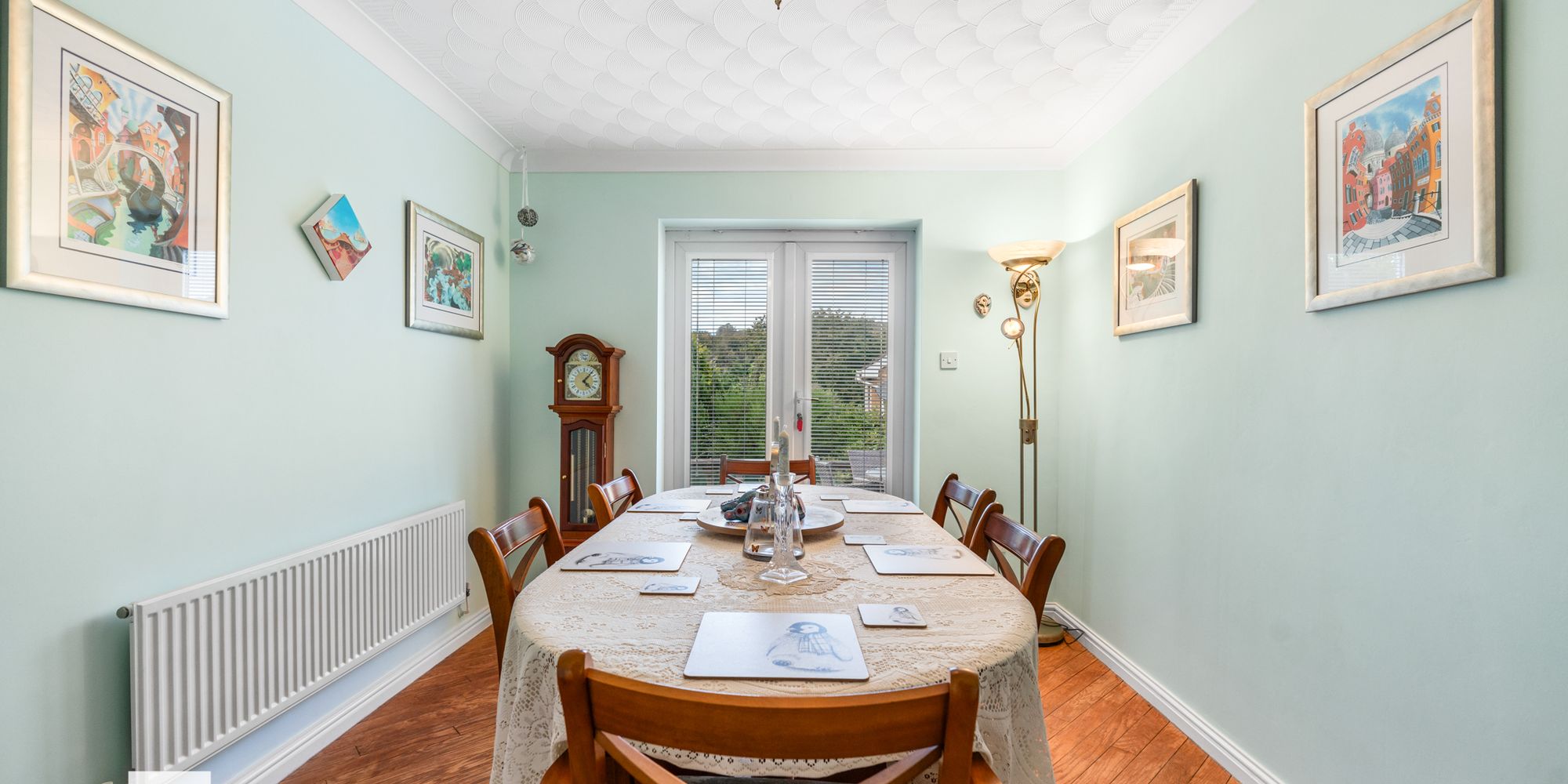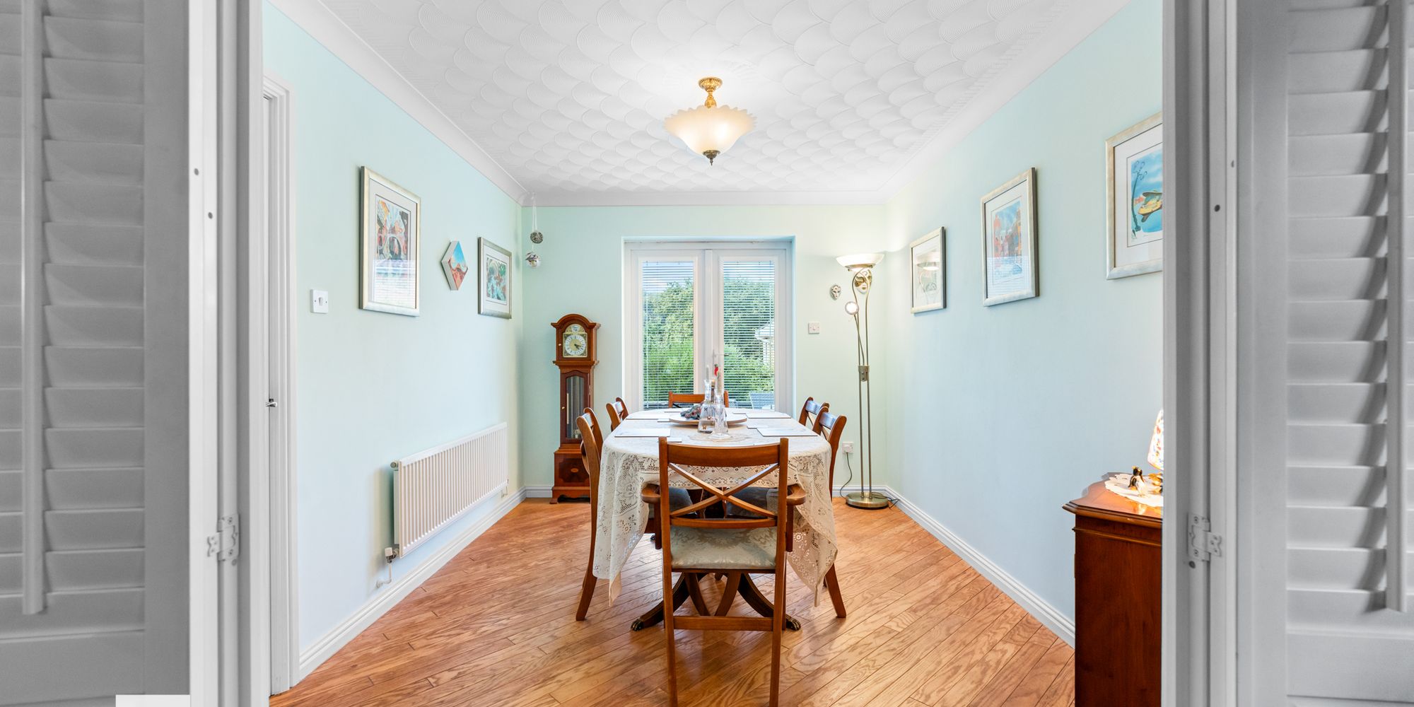 DINING ROOM Dimensions: 11' 10" x 9' 4" (3.63m x 2.85m). Dining room with ample space for dining table and chairs. Oak flooring. Radiator. French doors into rear garden. Arched doors through to lounge.