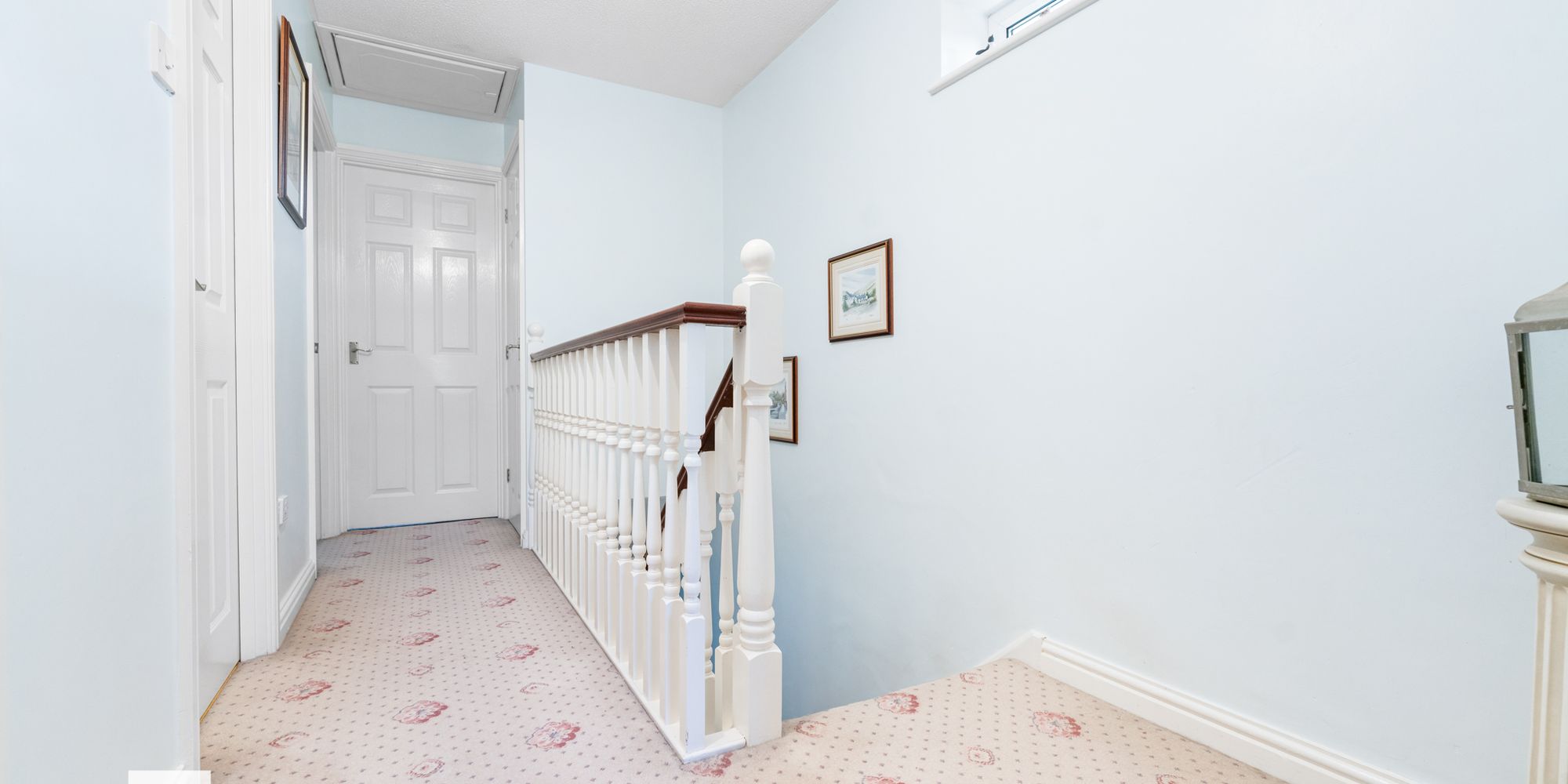 LANDING Window to side, landing area with storage cupboard housing hot water cylinder. Access to loft space.Doors leading to bedrooms and family bathroom.