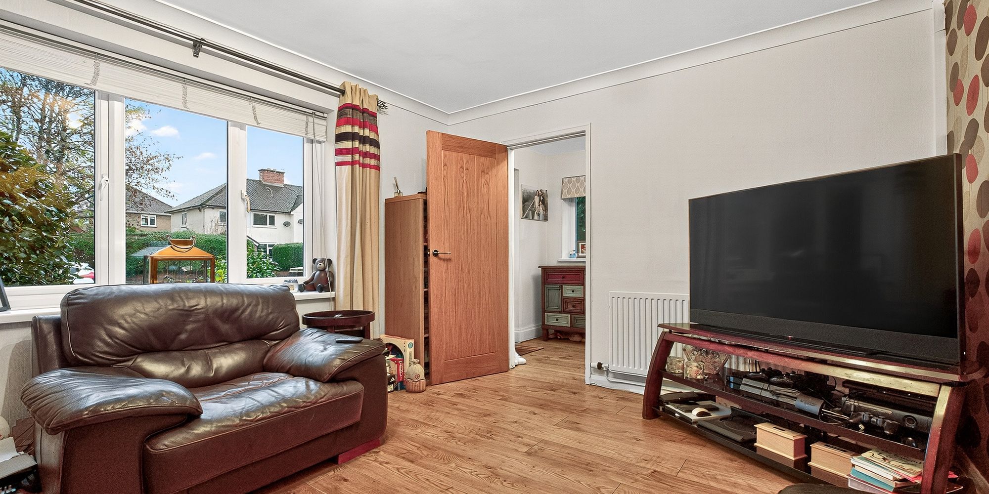 LOUNGE Dimensions: 13' 9" x 12' 5" (4.20m x 3.80m). UPVC window to the front. Radiator. Laminate flooring.