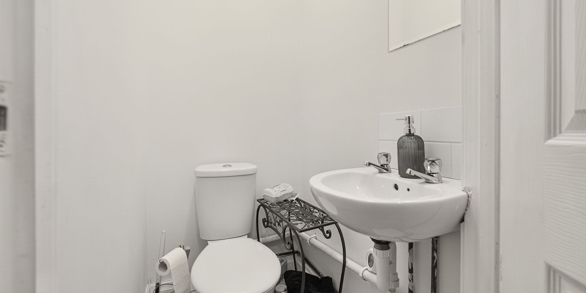W.C W.c and wash hand basin with hot and cold taps. Laminate flooring.