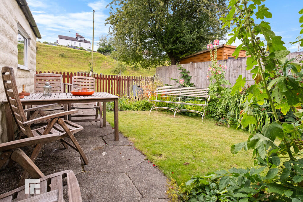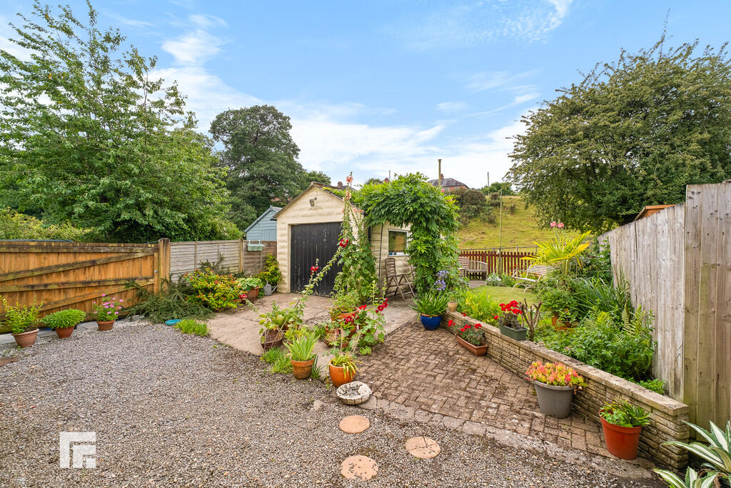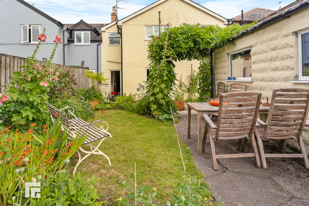 REARGARDEN Enjoying a westerly aspect. Keyblock patio and lawned with inset plants and shrubs. Access to garage. Backing onto open field housing alpacas and lamas. Please note the rear garden is owned in a 999 year lease from 1864.