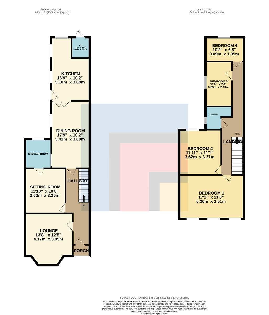 BEDROOMONE17' 0" x 11' 6" (5.20m x 3.51m) Carpet to floor. Coving. Pendant light fitting. Radiator. Three double glazed uPVC windows to front aspect. Power points.