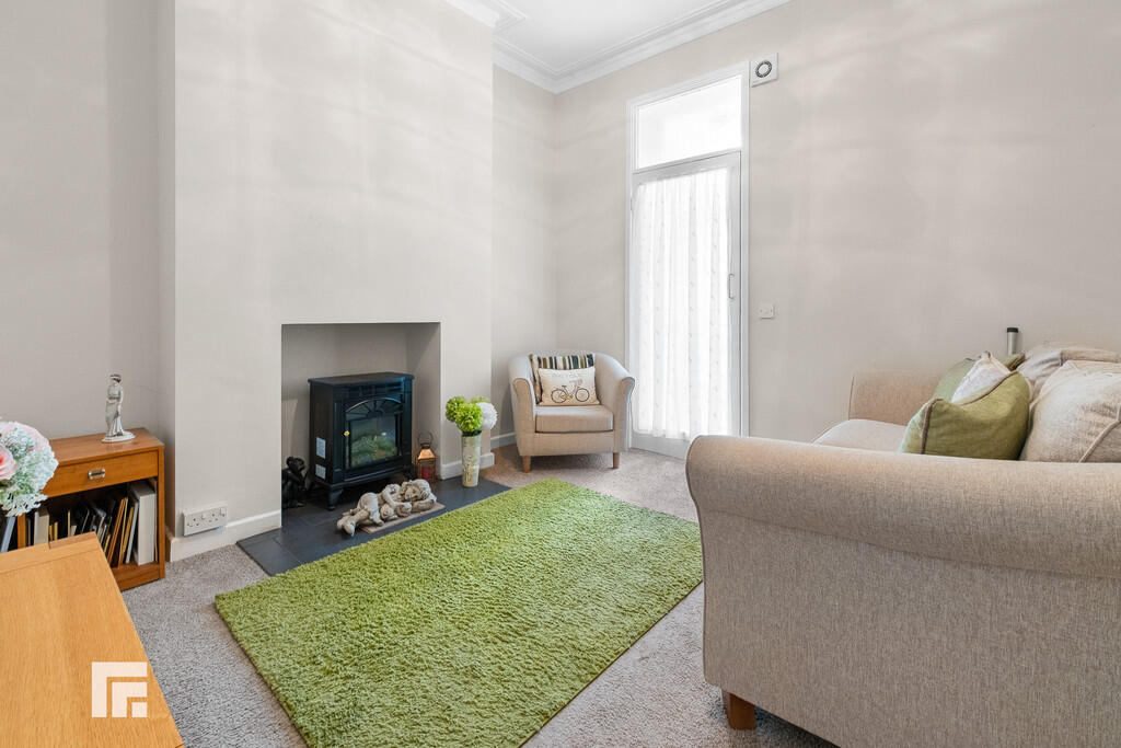 DININGROOM17' 8" x 10' 1" (5.41m x 3.09m) Laminate flooring. Coving. Two double glazed uPVC windows to side aspect. Radiator. Electric fire. Power points. TV point. Door to kitchen.