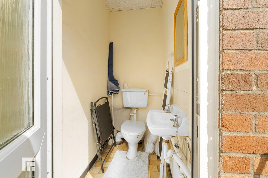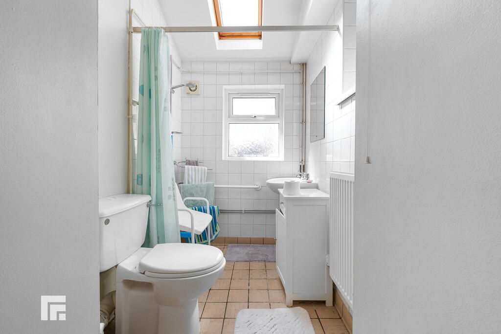 SHOWERROOM Tiled flooring and partially tiled walls. Adapted walk in shower cubicle with mains powered shower over. Obscure double glazed uPVC window and additional Velux window to rear aspect. WC. Pedestal wash hand basin with hot and cold tap over. Radiator. Pendant light fitting. Extractor.