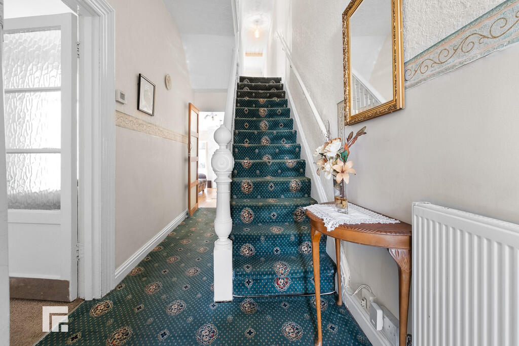 ENTRANCEHALL Entered via front door leading from front courtyard. Carpet to floor. Original coving. Radiator. Doors to lounge, sitting room and kitchen. Stairs rising to first floor.