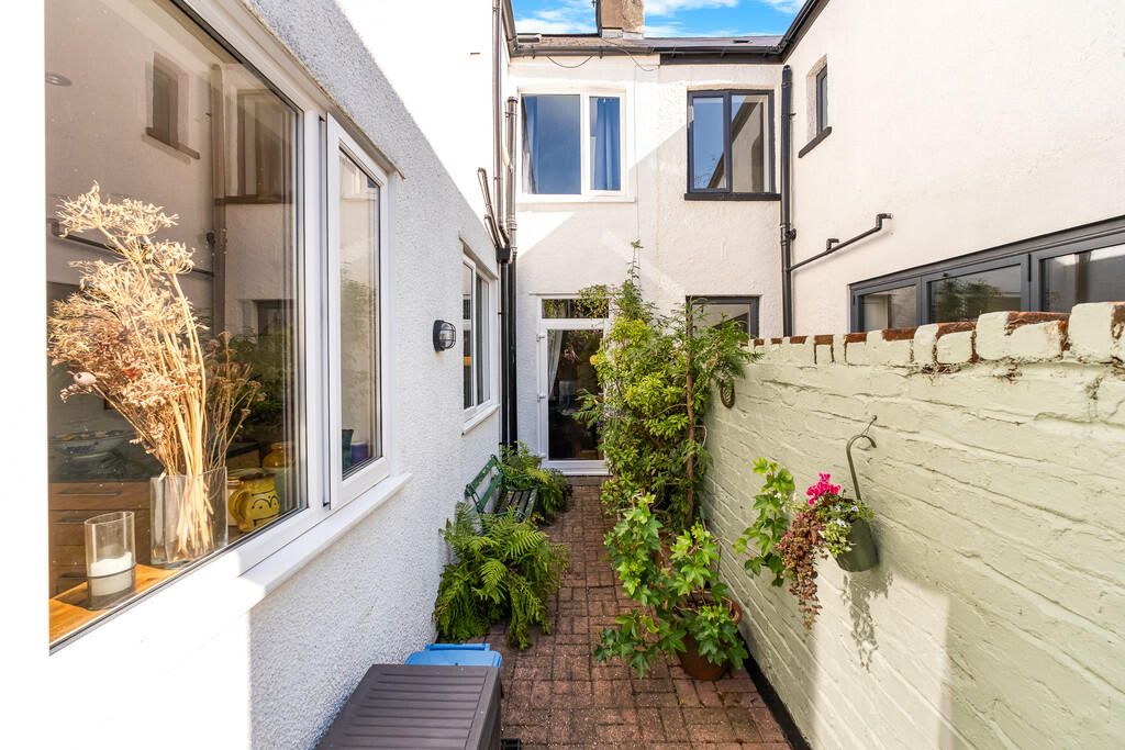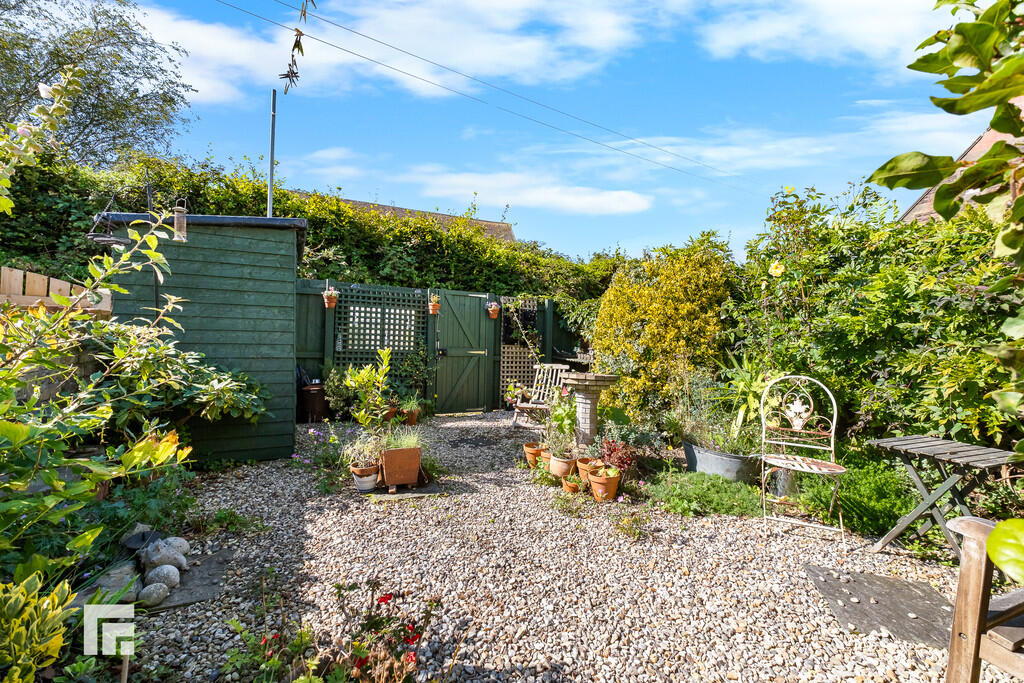 Rear - Southwest facing garden. Laid to patio. Wall border. Gate providing rear lane access - scope for off road parking. Shingled area. Mature shrubs and flowers. Outside tap.
