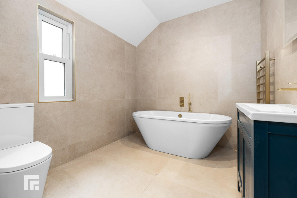 BATHROOM11' 8" x 7' 4" (3.58m x 2.24m) Mandarin stone fully tiled walls and flooring. Double glazed obscure sash window to --- aspect. Walk in shower cubicle with mains powered shower over and additional handheld shower attachment. Freestanding bath with mains shower attachment over. Vanity wash hand basin with mixer tap over and storage beneath. WC. Heated towel rail. Spotlights. Shaver point.