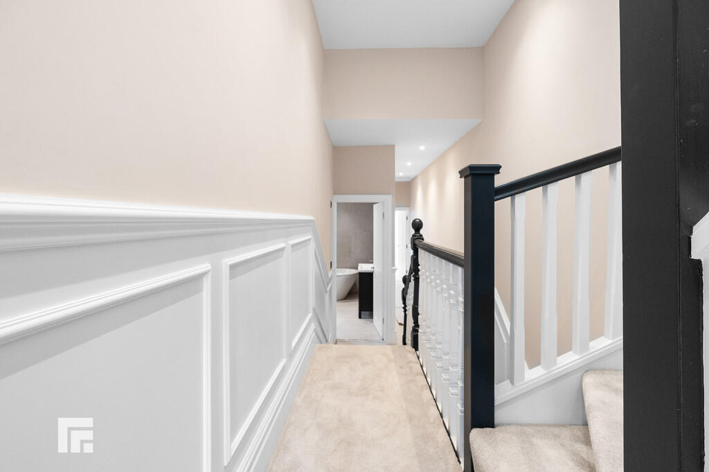 FIRSTFLOOR Split level landing. Carpet to floor. Spotlights. Radiator. Doors to three bedrooms and family bathroom. Stairs rising to second floor.