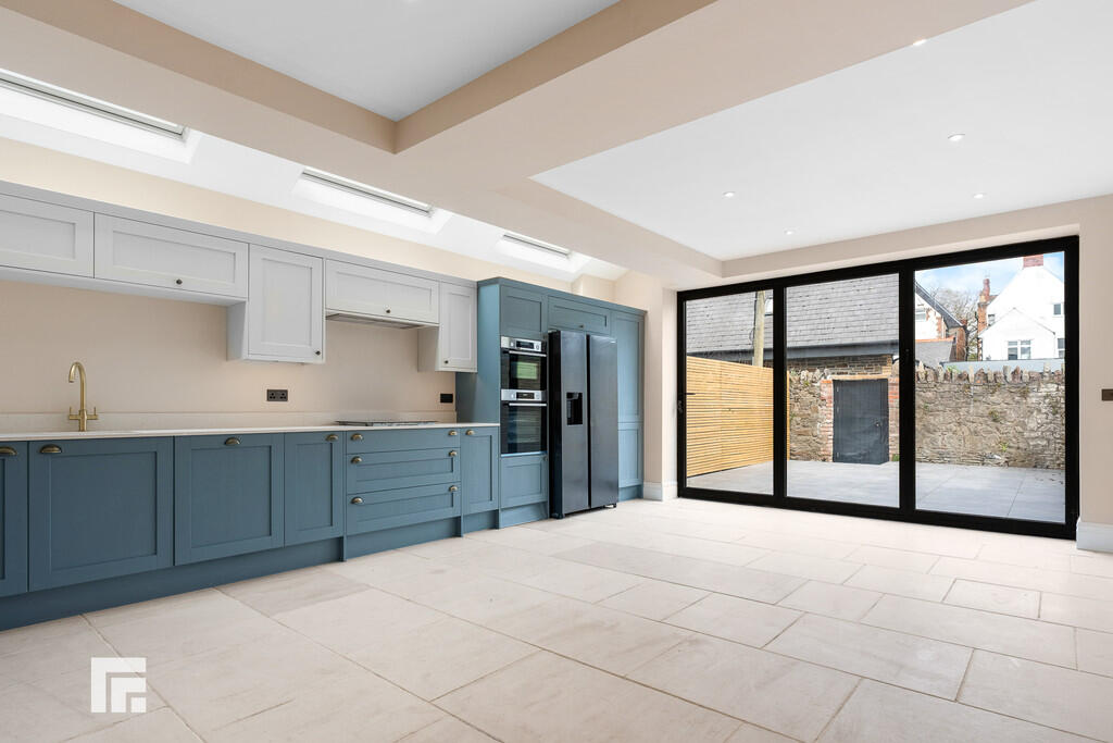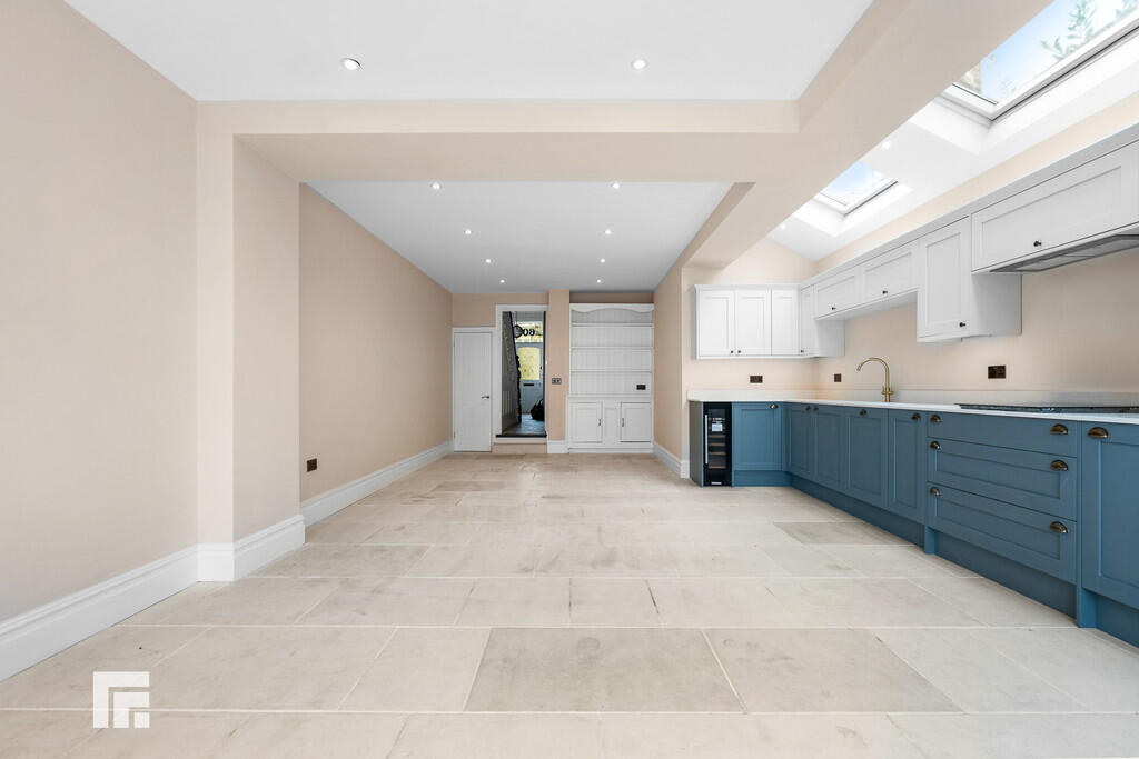 KITCHEN/DINER29' 11" x 15' 5" (9.12m x 4.71m) Newly fitted kitchen with a range of wall, base and drawer units with granite worktops over incorporating induction hob with extractor above, and inset sink with mixer tap over. Integrated appliances such as dishwasher, and oven/grill. Mandarin natural stone tiled floor with underfloor heating. Spotlights. Bifold doors leading to rear garden. Space for dining table and chairs. Velux windows providing ample natural daylight.