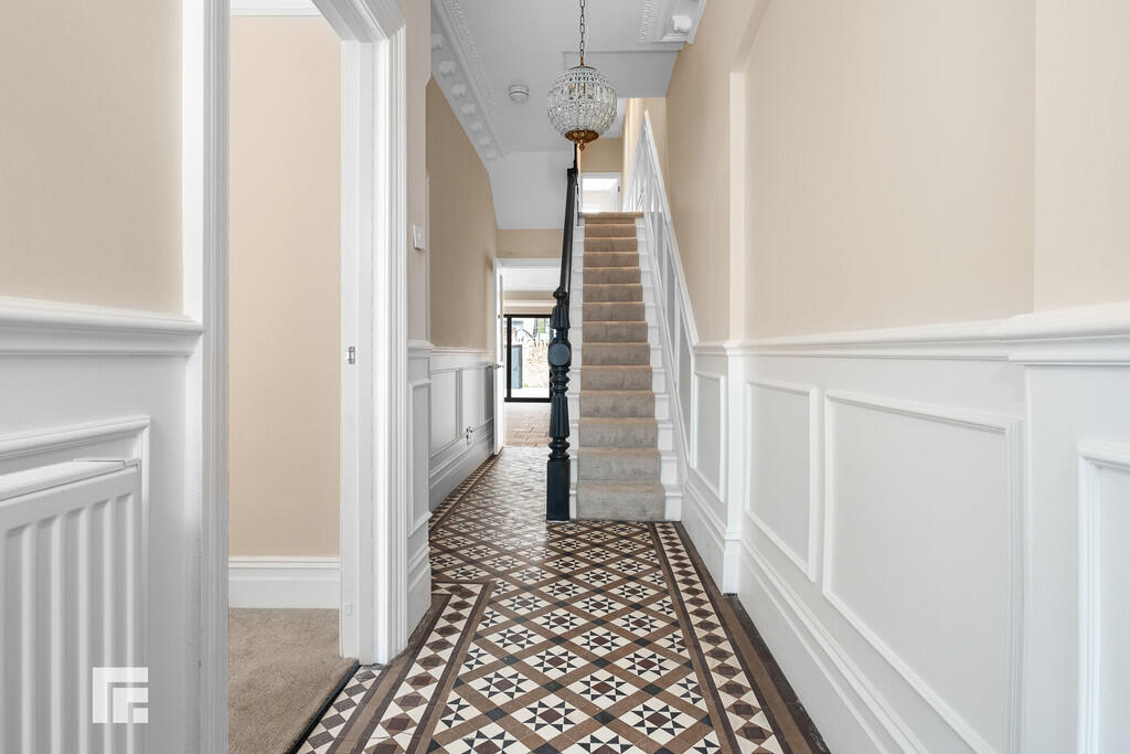 ENTRANCEHALL Entered via front door. Original tiled flooring. Coving to ceiling. Pendant light. Radiator. Stairs rising to first floor. Doors to lounge, dining room and kitchen/diner.