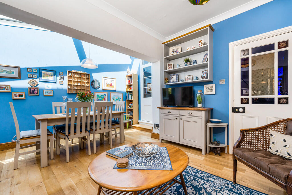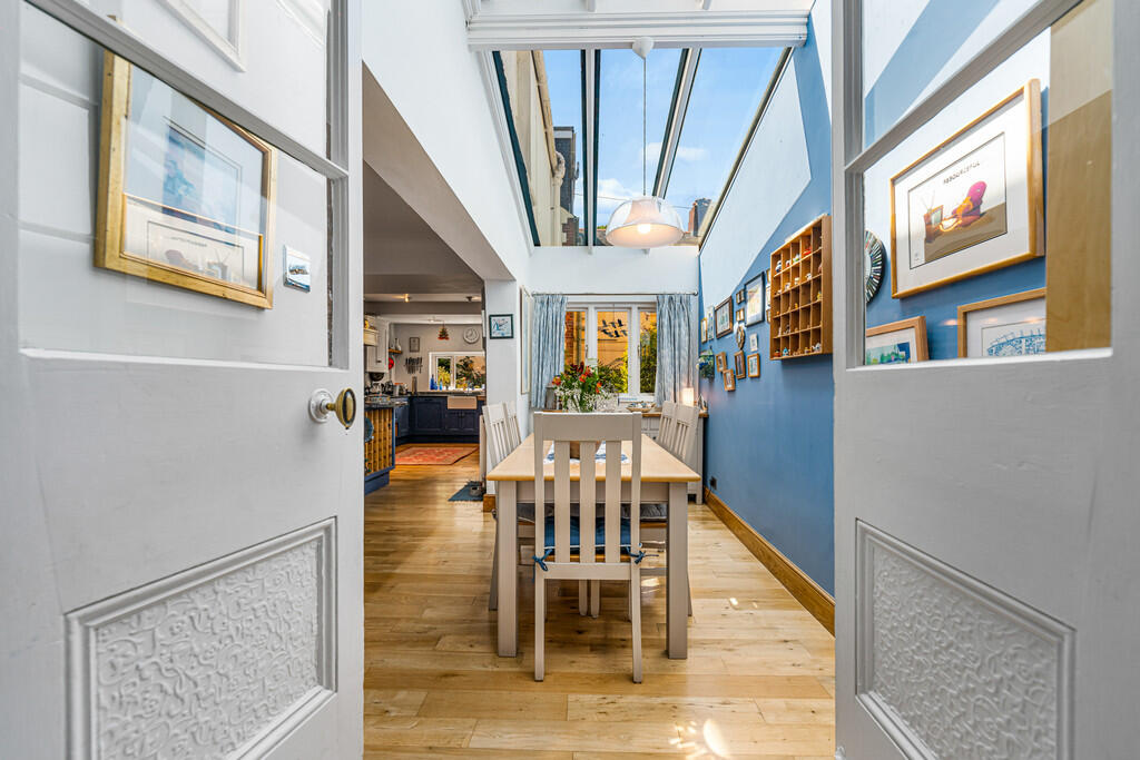 DININGAREA14' 4" x 7' 2" (4.37m x 2.18m) A lovely light side extension that offers versatile space, currently used as a dining area. Windows above with door leading to garden via side access. Wooden flooring.