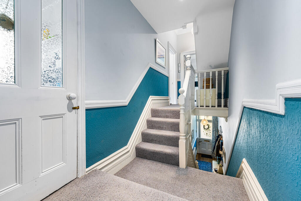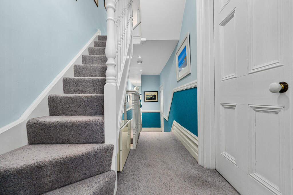 SECONDFLOOR Split level landing, wooden balustrades. Dado rail and deep skirting boards.