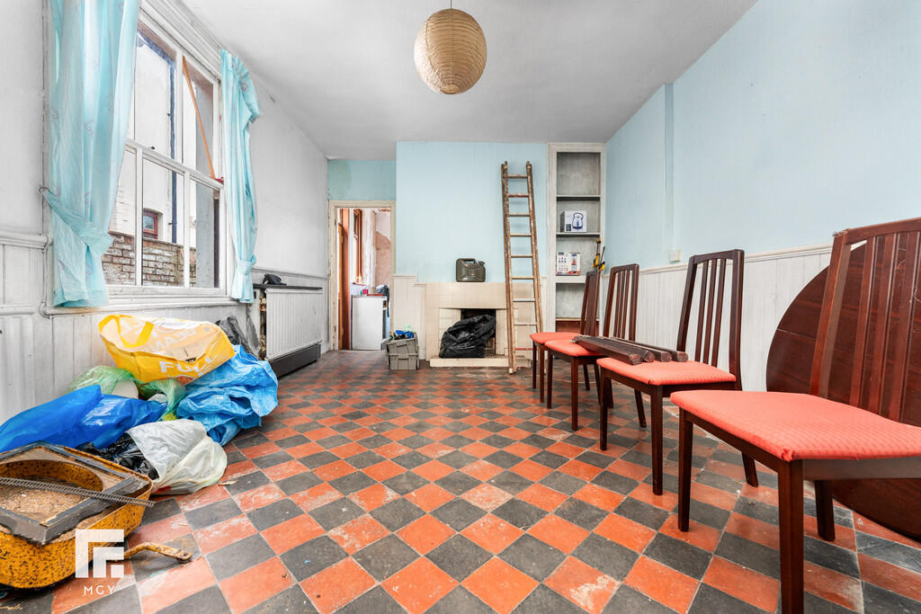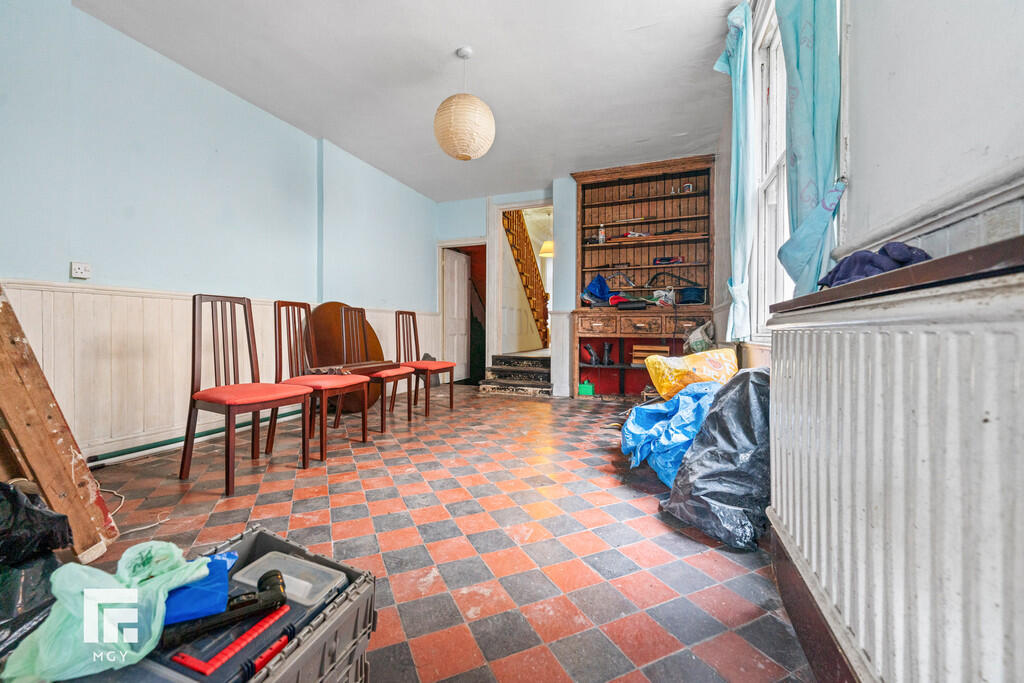 ENTRANCEHALL Entered via front door leading from front garden. Original tiled flooring. Pendant light fitting with ceiling rose. Original coving to ceiling. Radiator. Doors to both reception rooms and dining room. Cupboard housing utility meters. Stairs rising to first floor.