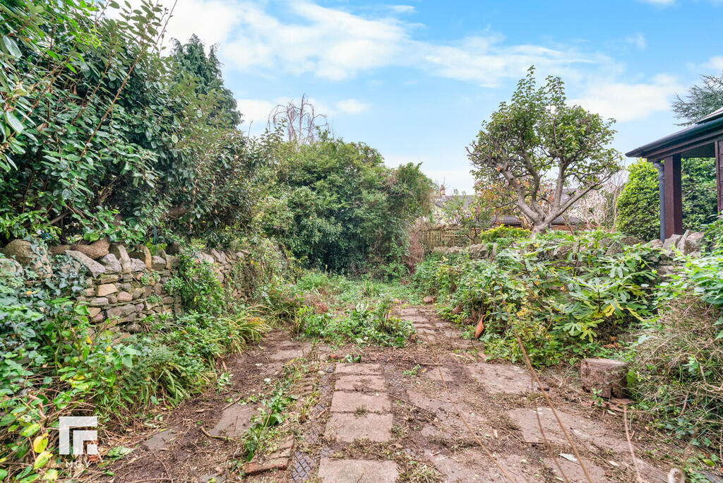 Rear - Laid to patio. Fence border. Outhouse.