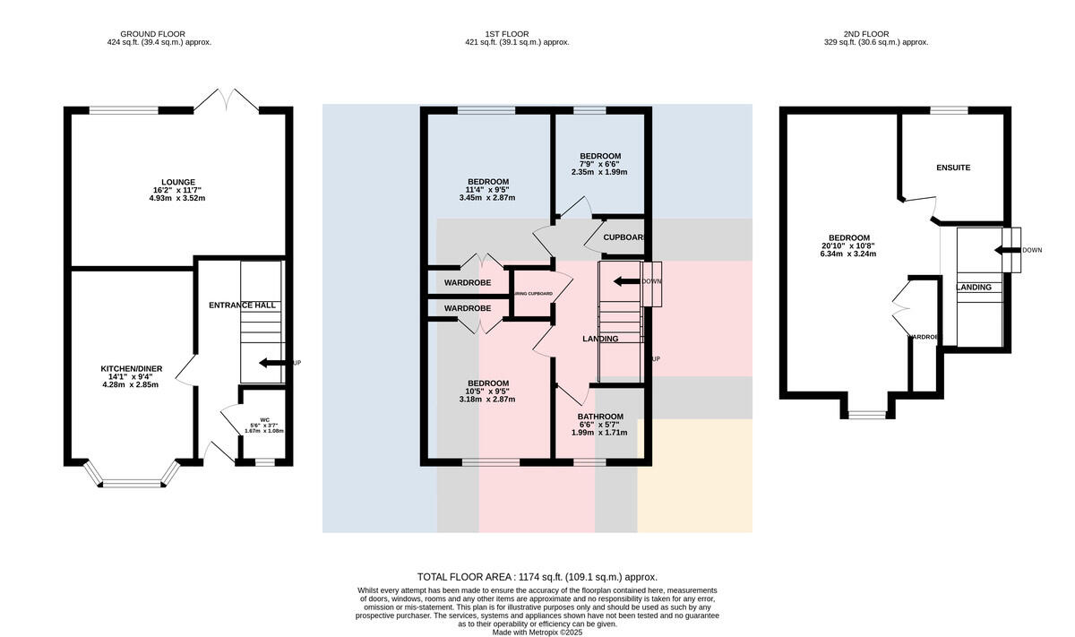 LANDING9' 5" x 3' 3" (2.882 m x 1.011 m) Storage cupboard housing hot water tank. Further storage cupboard. Stairs to second floor. Doors to all rooms.