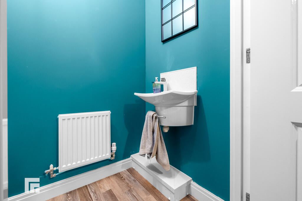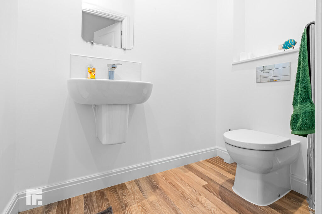 DOWNSTAIRSWC6' 0" x 2' 11" (1.85m x 0.89m) WC. Wall mounted wash hand basin with mixer tap over. Tiled splashback. LVT flooring. Pendant lighting. Radiator. Extractor.