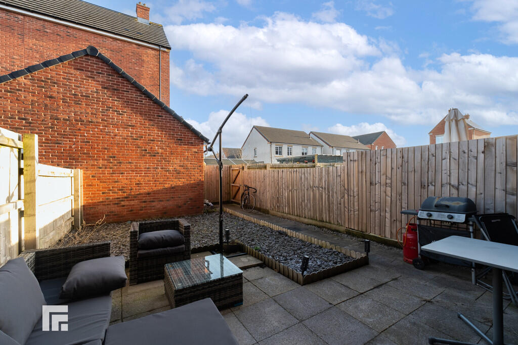 OUTSIDE South East facing garden with laid to patio and shingled area. Outside tap. Fenced border with gated rear access.