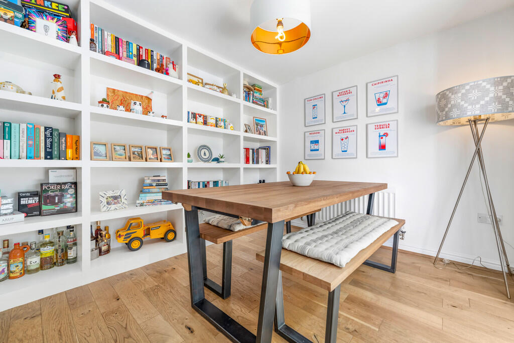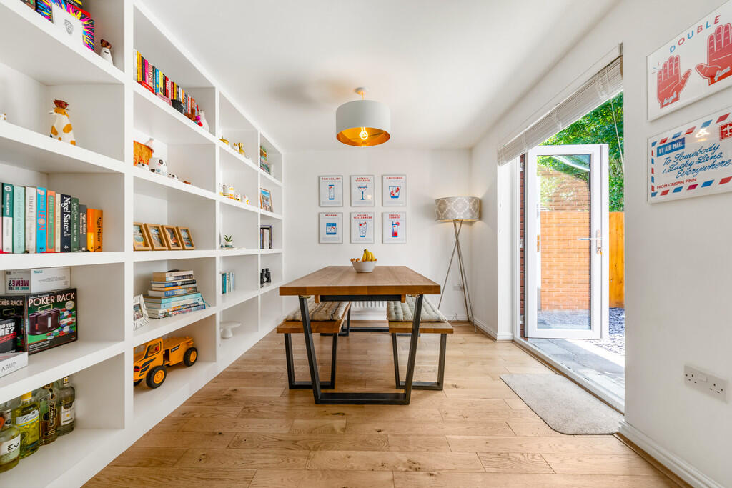 KITCHEN/DININGROOM20' 4" x 14' 6" max (6.20m x 4.42m) A lovely open kitchen/diner with range of modern high gloss wall, base and drawer units with contrasting work surfaces incorporating stainless steel sink unit and drainer. Built in Smeg oven and microwave, dish washer and fridge freezer. Inset gas hob with stainless steel extractor hood with lights above. Double glazed window to rear plus double glazed French doors to rear. Radiator. TV point and power points. Engineered wooden flooring.