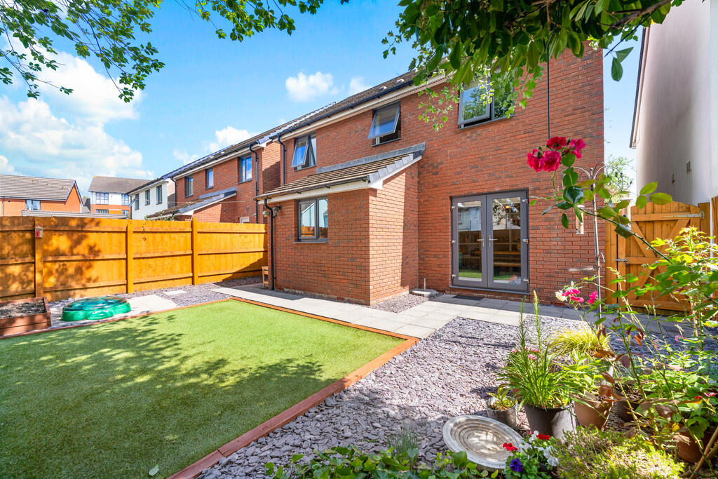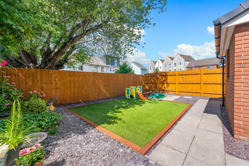 GARDEN Low maintenance rear garden with mature shrubs and plants. Fully enclosed with astro turf, borders with shrubs and plants. Two patio areas. Fencing to borders. External lighting. Accessed from the kitchen/diner, utility room and additional side gate.