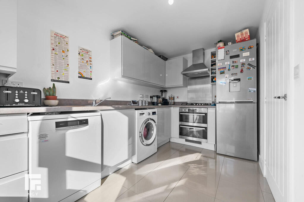 KITCHEN12' 2" x 8' 11" (3.71m x 2.74m) Tiled flooring. Modern fitted kitchen with a range of wall, base and drawer units with worktops over incorporating 1.5 stainless steel sink with drainer and mixer tap over and gas hob with oven beneath and extractor above. Space for appliances such as washing machine and fridge/freezer. Wall mounted combination boiler. Double glazed window to front aspect. Power points. Radiator. Space for dining table.