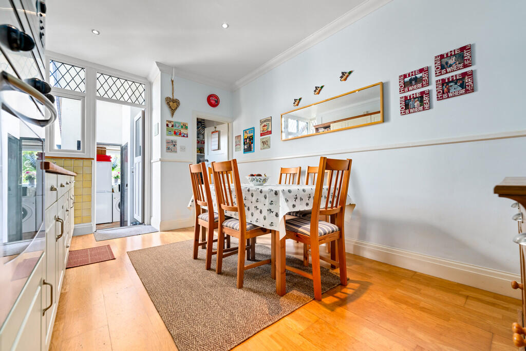 UTILITYROOM7' 8" x 5' 9" (2.36m x 1.76m) Compete with base and eye level units with worktops over. Space for washing machine and free standing fridge/freezer. Upvc double glazed window to rear.