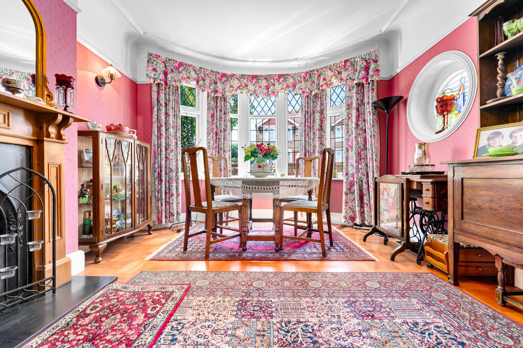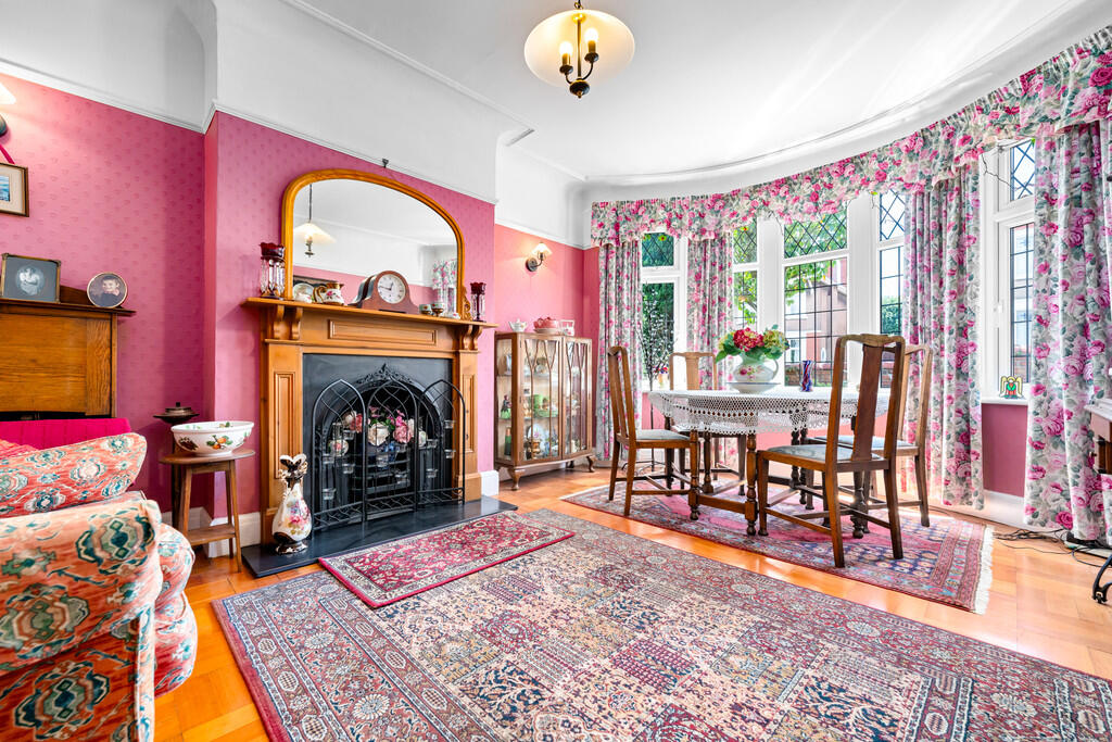 DININGROOM16' 2" into bay x 11' 2" into alcove (4.94m x 3.42m) Textured walls with smooth ceiling and a central light pendant with parquet flooring to finish. Feature fireplace with surround. Upvc double glazed bay window to front.