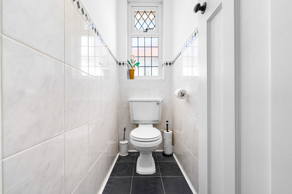 SEPARATEWC Complete with a single piece suite comprising WC, tiled walls and flooring with textured ceiling and a central light pendant. Upvc double glazed obscure window to rear.