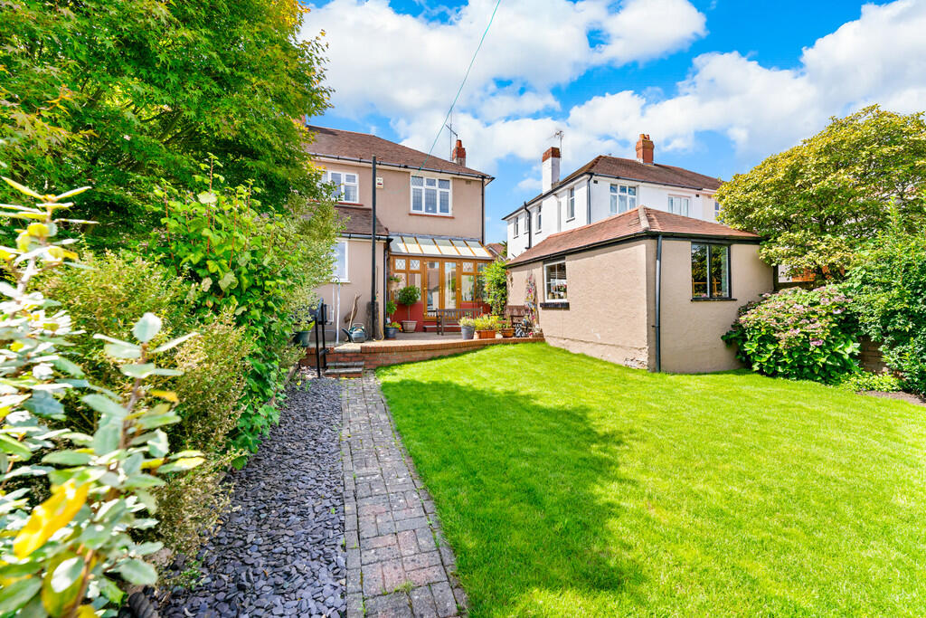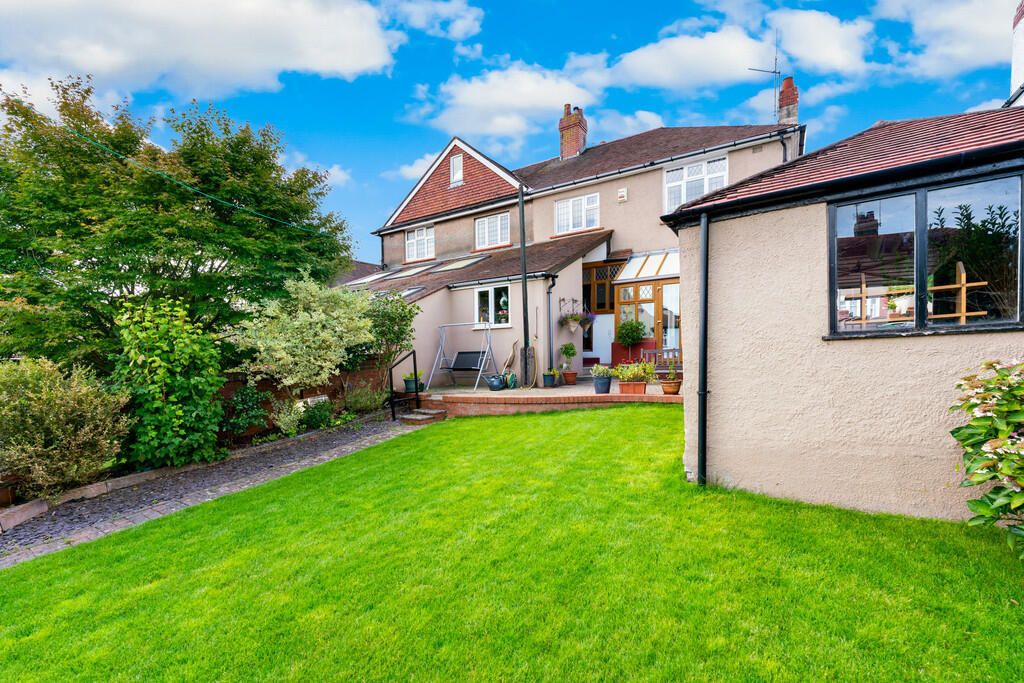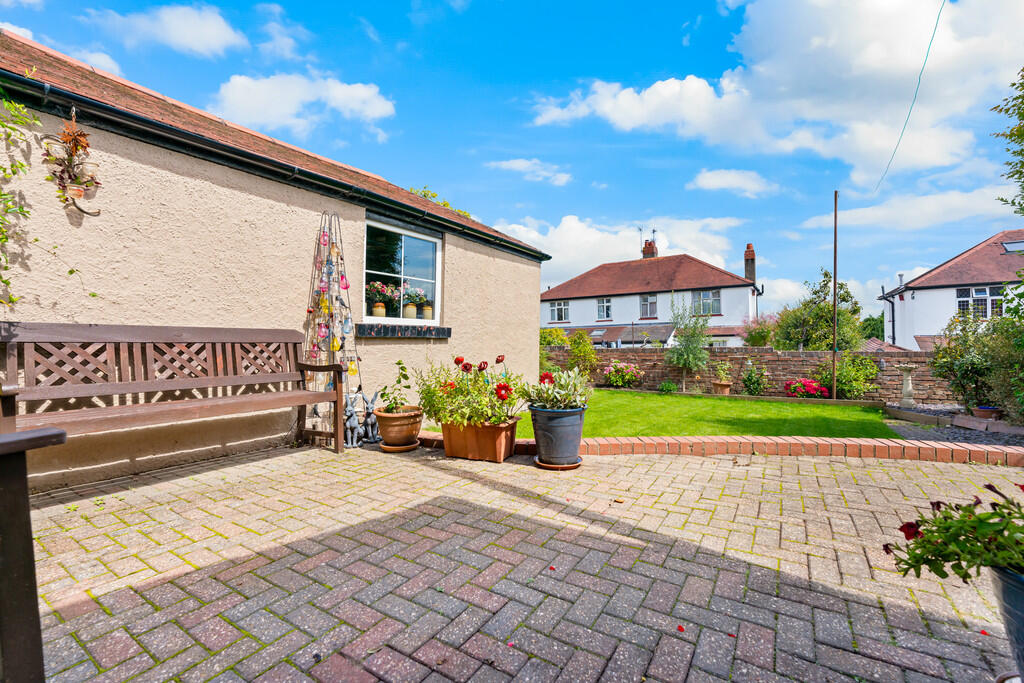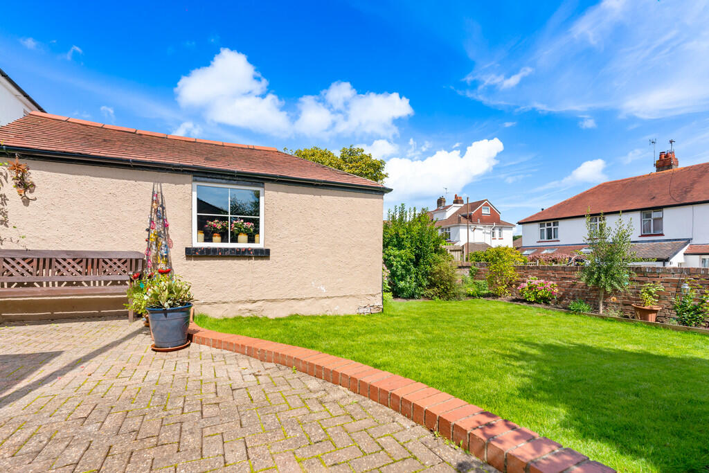 REAR GARDEN -An enclosed beautifully kept garden compete with a block paved patio area with the remainder laid to lawn. A board of plants and trees align the exterior brick wall.