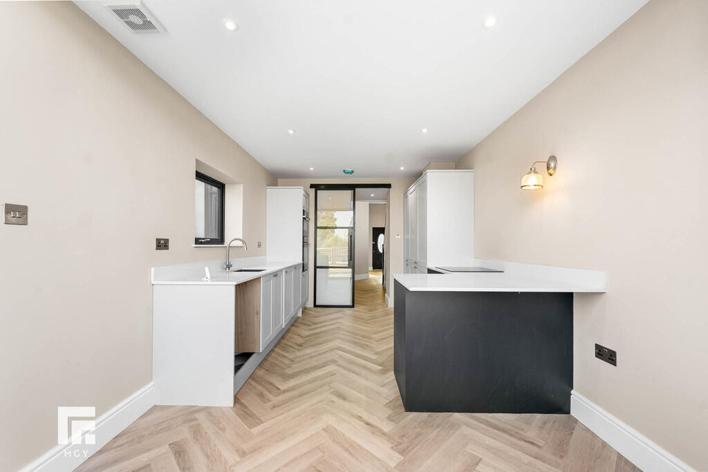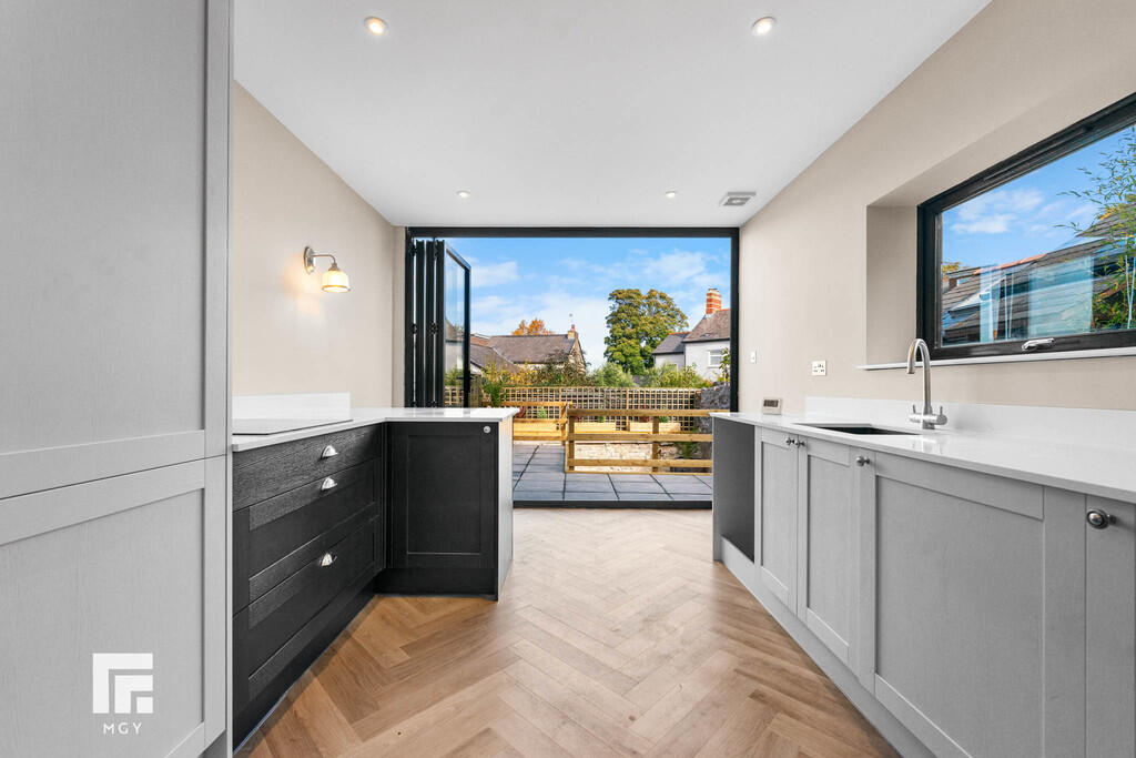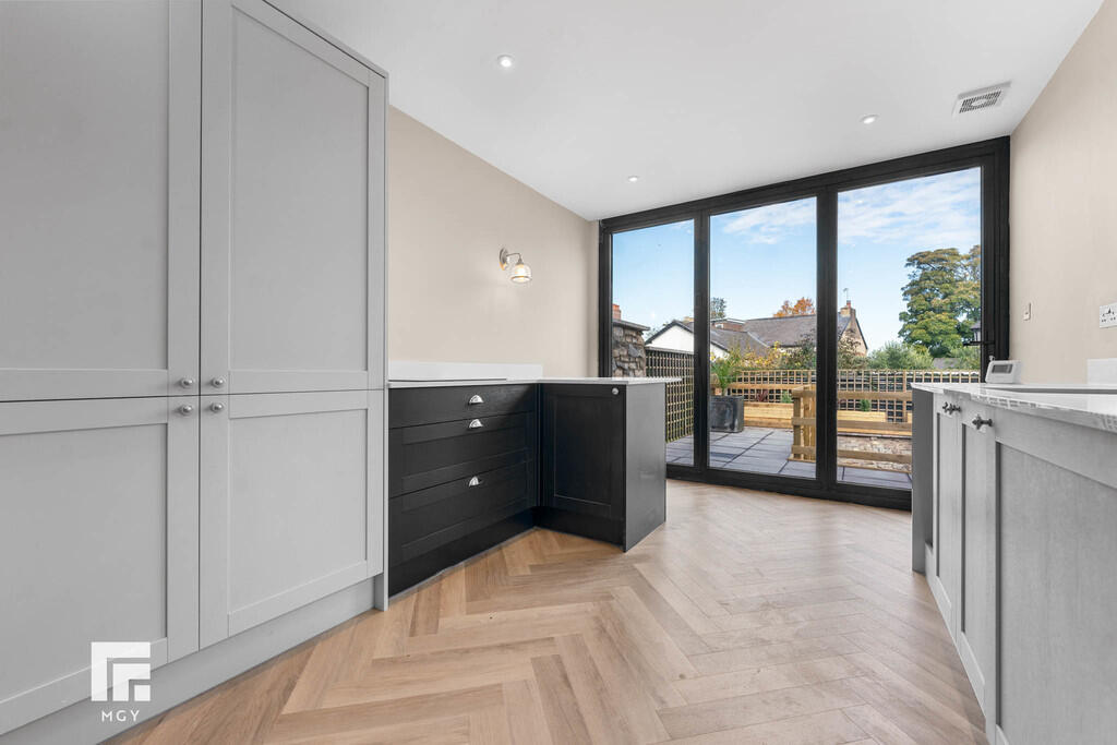 KITCHEN/BREAKFASTROOM Continuation of LVT flooring with underfloor heating beneath. Modern fitted kitchen with a range of wall, base and drawer units with worktops over incorporating inset sink with hot and cold tap over and induction hob with extractor above. Integrated appliances such as oven and grill. Space for washing machine and fridge/freezer. Power points. Spotlights and additional wall lighting. Double glazed window to side aspect. Bi-folding doors leading to rear garden.