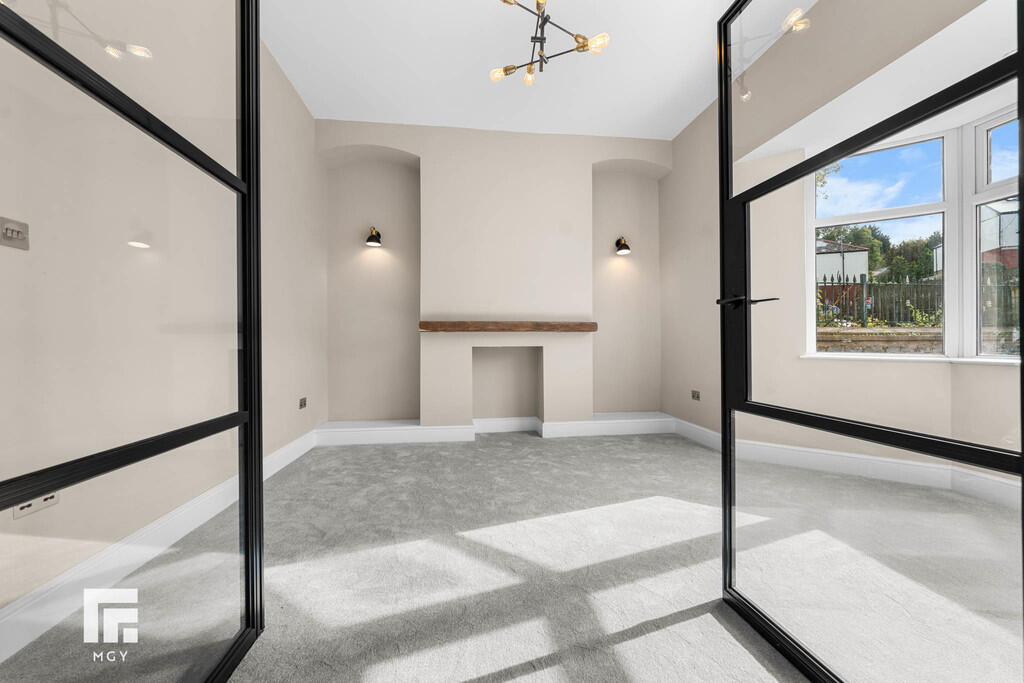 LOUNGE Double glazed bay window to front aspect. Newly fitted carpets. Two alcoves with feature fireplace. Pendant light fitting with additional wall lighting. Power points. Underfloor heating.