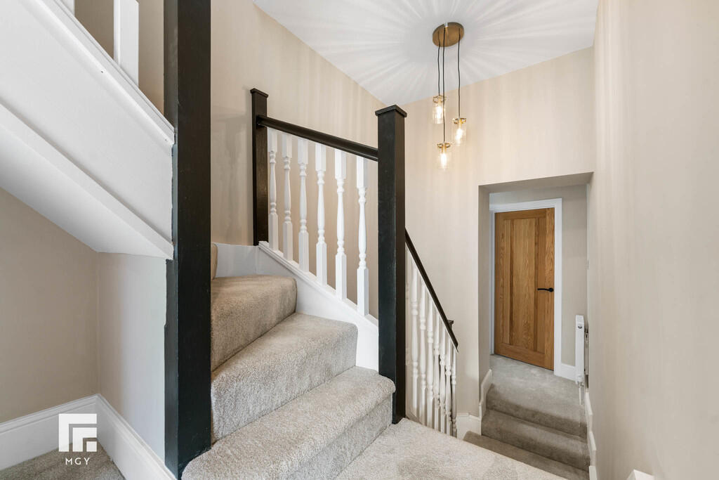 SECONDFLOOR Carpet to floor. Pendant light fitting. Door to master bedroom.