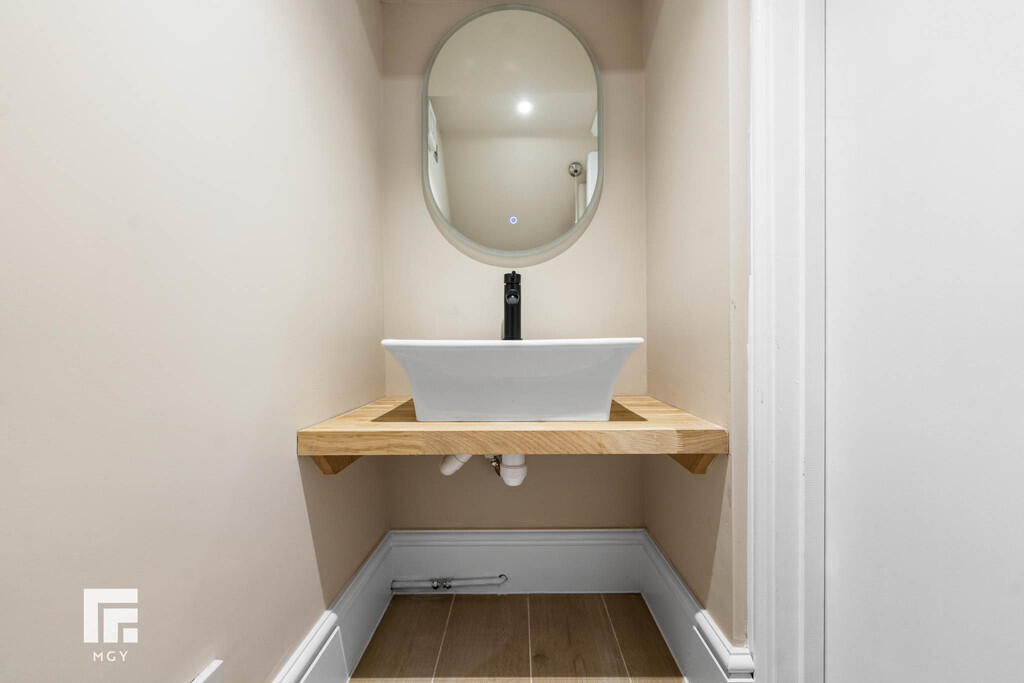 DOWNSTAIRSWC Tiled flooring. WC. Wash hand basin with mixer tap over. Wall mounted LED mirror. Spotlight. Extractor.