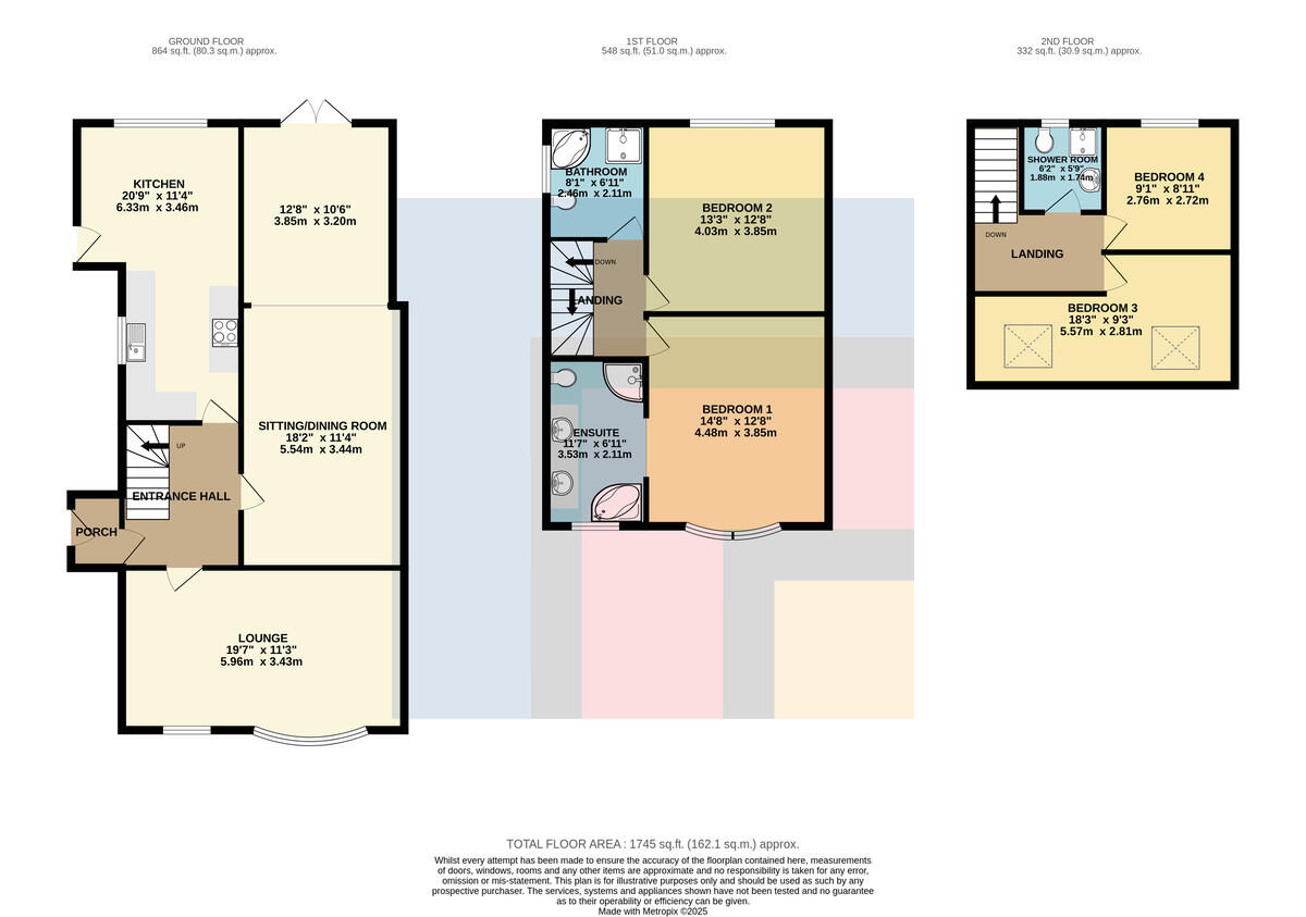 SHOWERROOM6' 2" x 5' 8" (1.88m x 1.74m) Double glazed window to rear aspect. Fully tiled walls and flooring. Shower cubicle with mains shower. Pedestal wash hand basin with mixer tap over. WC. Wall mounted mirror over with fixed side lighting. Coving. Radiator.